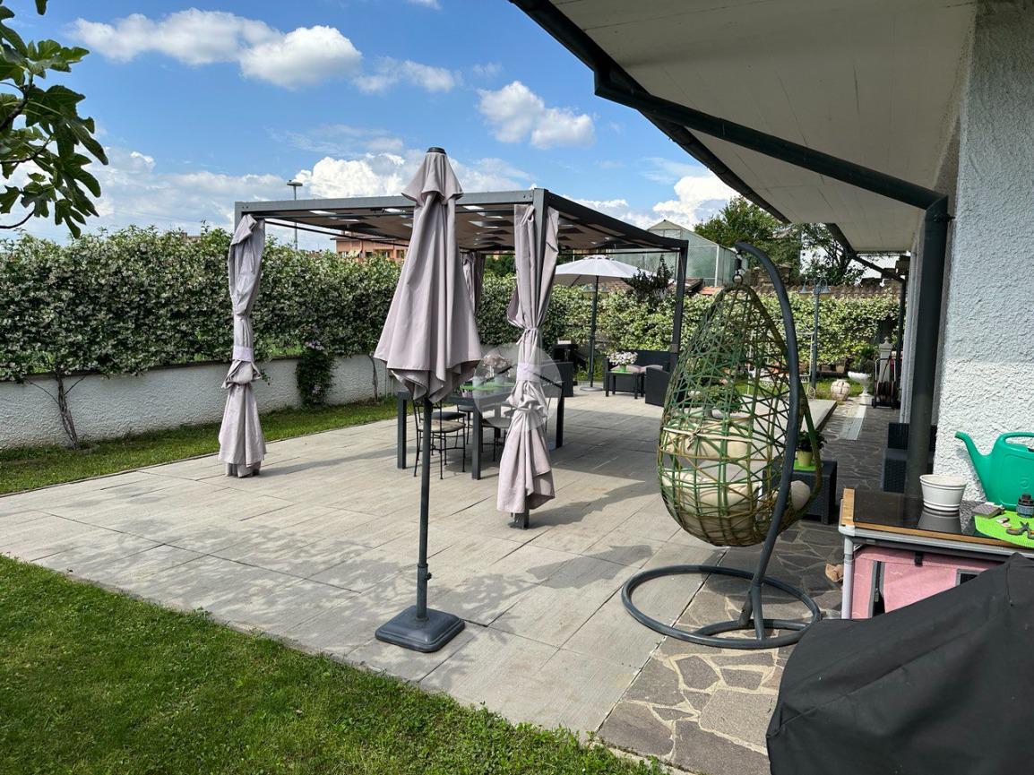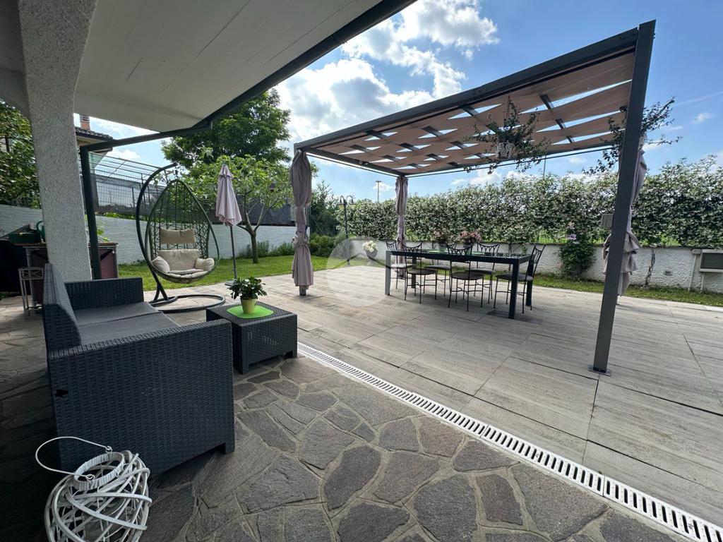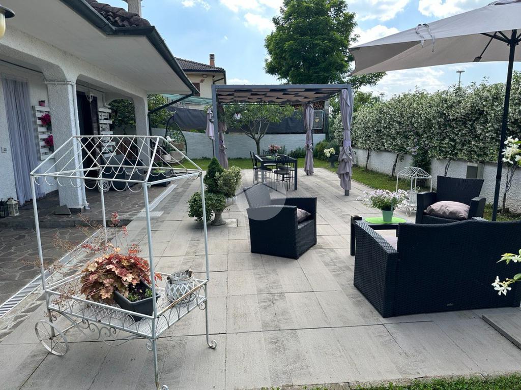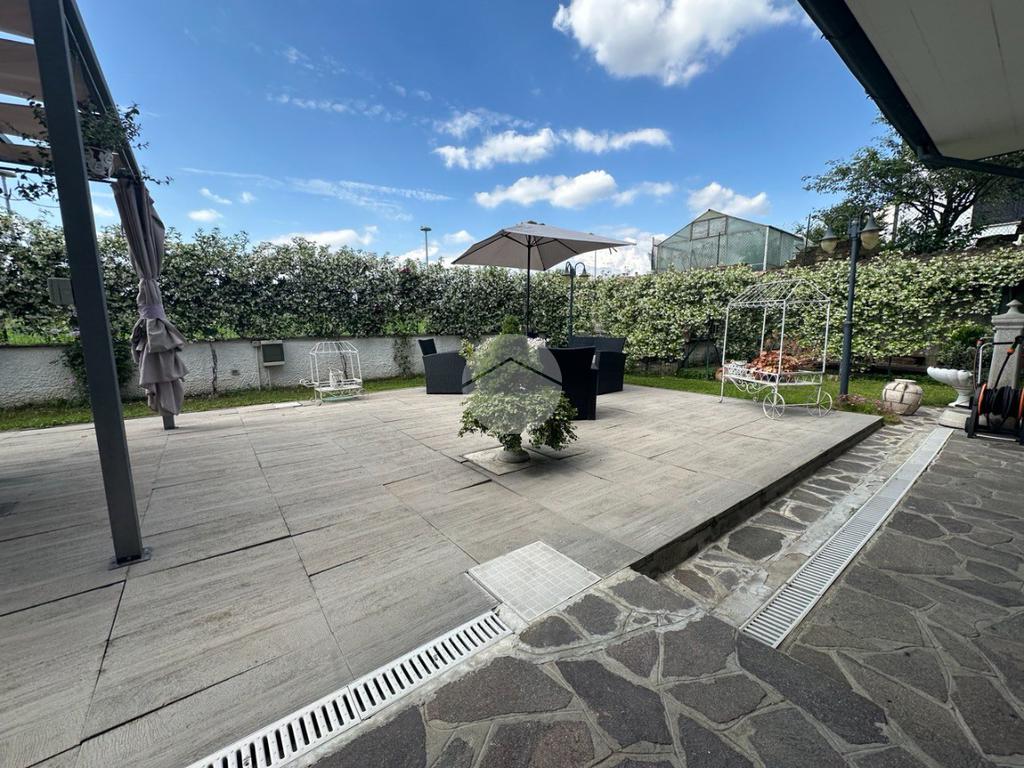 L’area esterna è un vero gioiello, perfetta per creare una zona relax con divanetti e un’ampia zona pranzo per accogliere amici e familiari. Il giardino ben curato e il portico spazioso rendono questa proprietà unica nel suo genere.