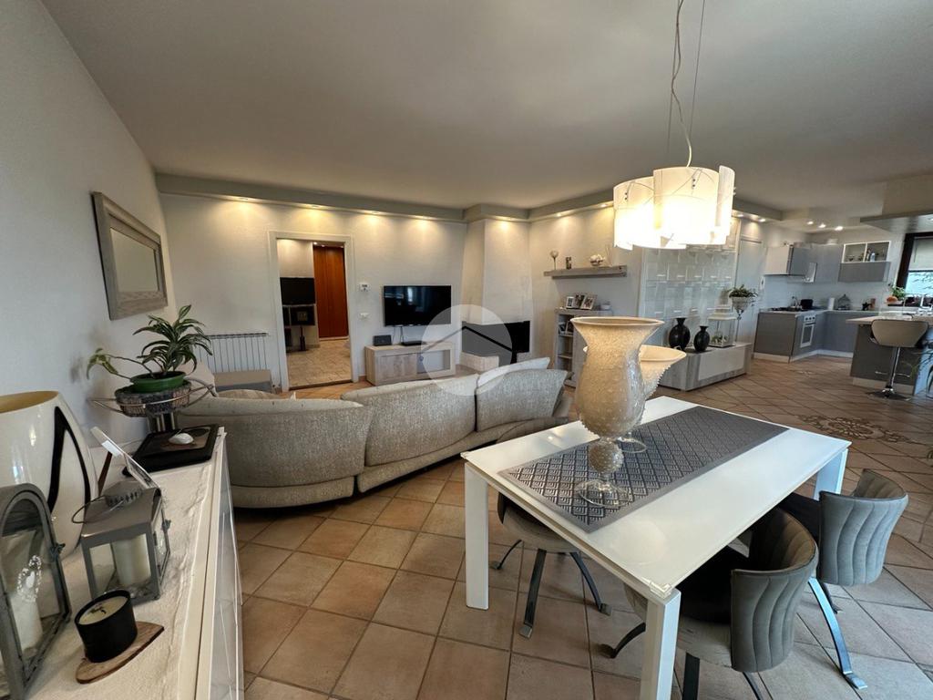 All’interno, l’appartamento vanta una generosa zona giorno in stile loft, con un soggiorno luminoso, una sala da pranzo accogliente e una cucina abitabile a vista. La disposizione open space crea un ambiente conviviale e versatile, perfetto per la vita quotidiana e per ospitare.
