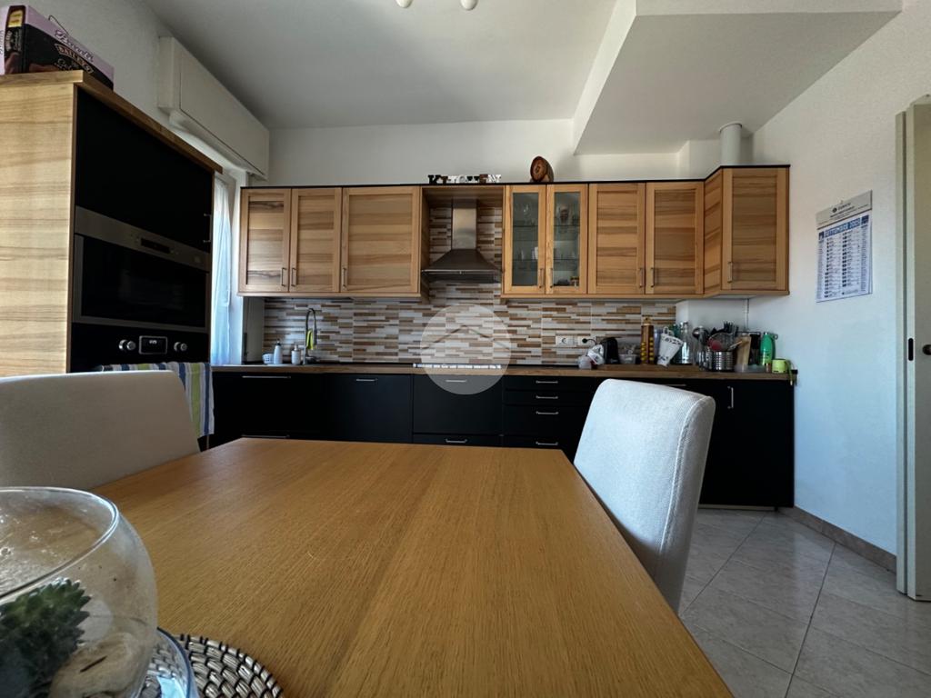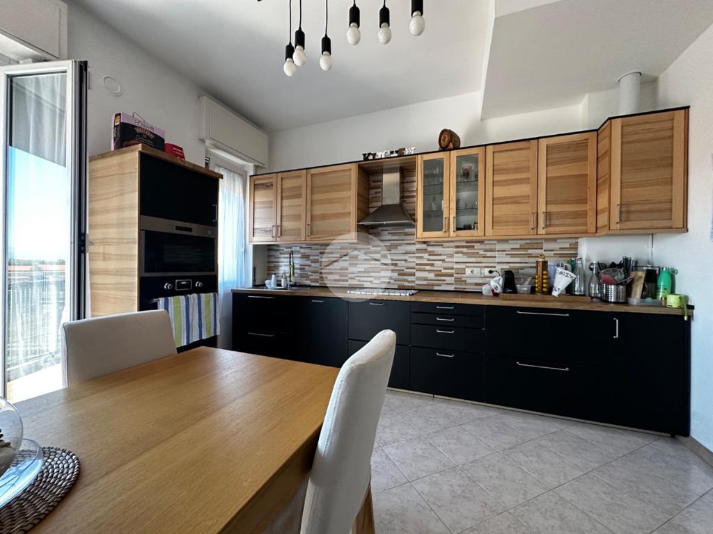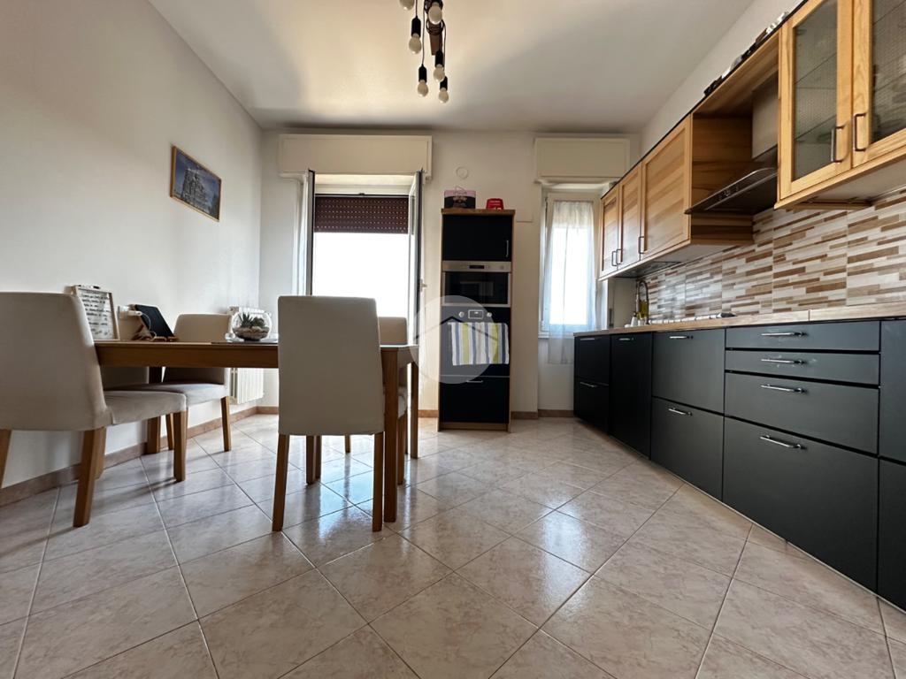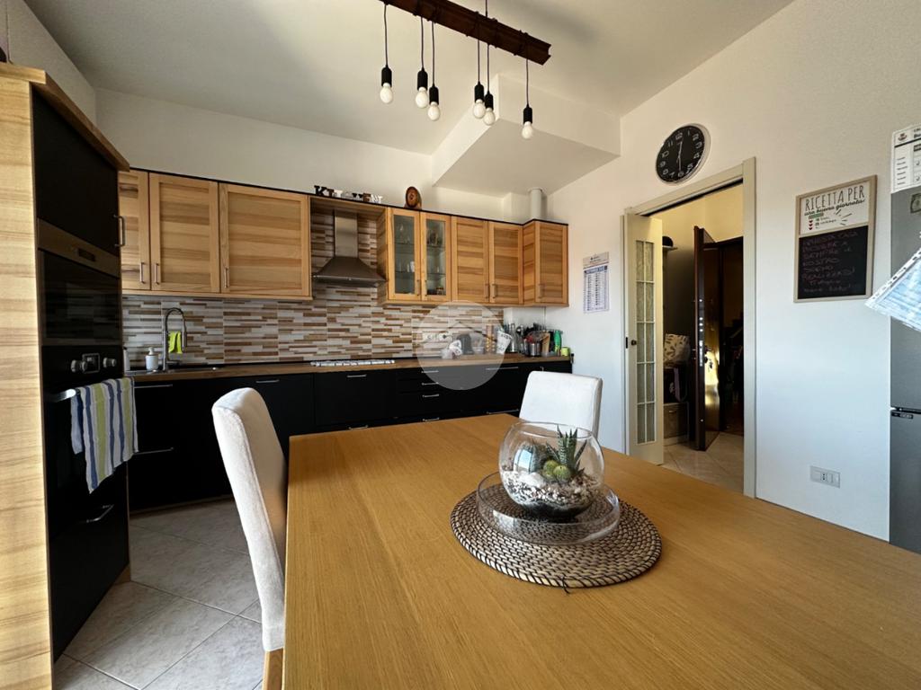 Nel cuore del paese, a pochi passi da tutti i principali servizi, proponiamo in vendita un luminoso appartamento posto al quinto ed ultimo piano di un condominio servito da ascensore. L’ingresso si apre su un soggiorno accogliente e di generose dimensioni, perfetto per vivere la quotidianità con comfort e praticità. La cucina, ampia e abitabile, offre lo spazio ideale per arredarla con una parete lineare funzionale e un tavolo da sei persone, creando così un ambiente conviviale e ben organizzato. Sia dal soggiorno che dalla cucina si accede a un balcone panoramico, ideale per momenti di relax e per godere di una vista aperta.