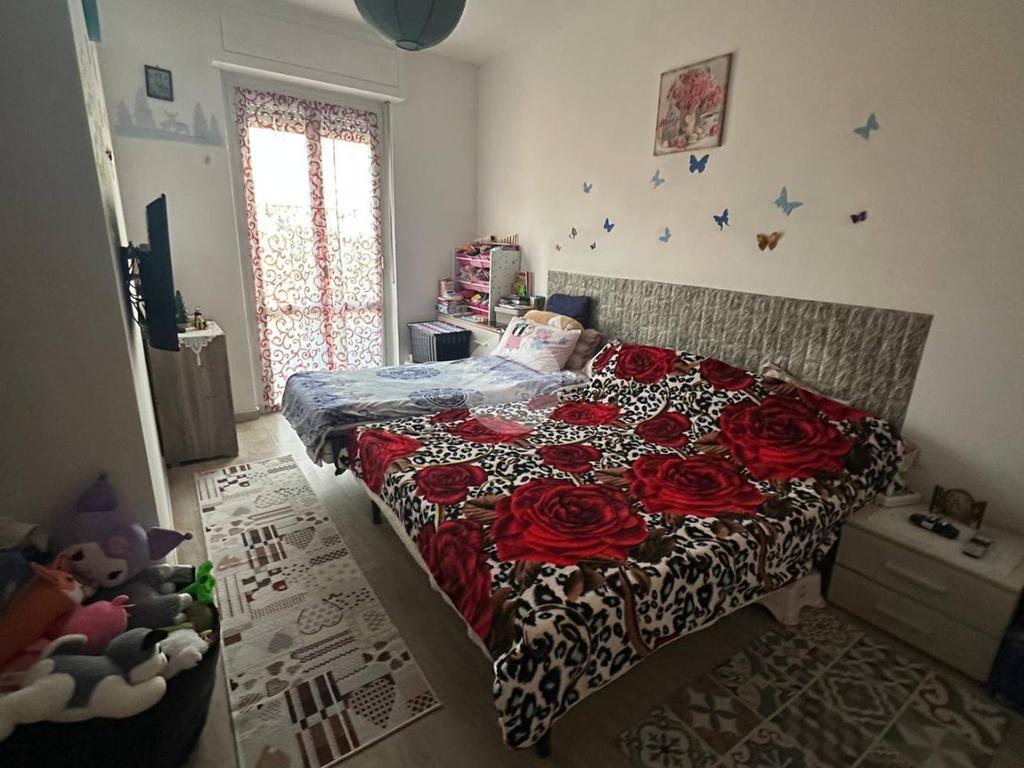 La soluzione è composta da un luminoso soggiorno con cucina a vista, dal quale si accede a un balcone vivibile, due ampie camere da letto entrambe matrimoniali – una delle quali dotata di secondo balcone – e un bagno finestrato con doccia.