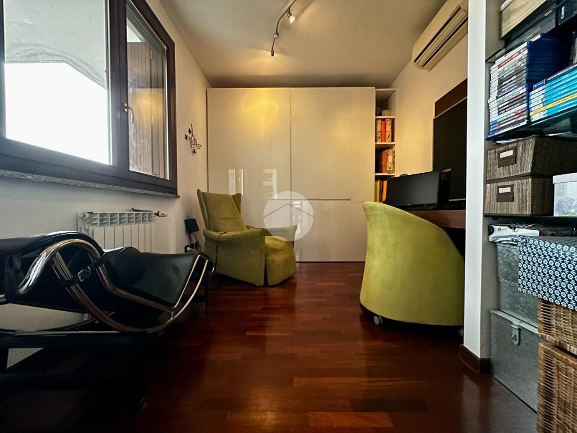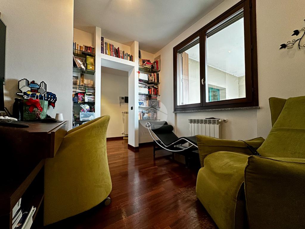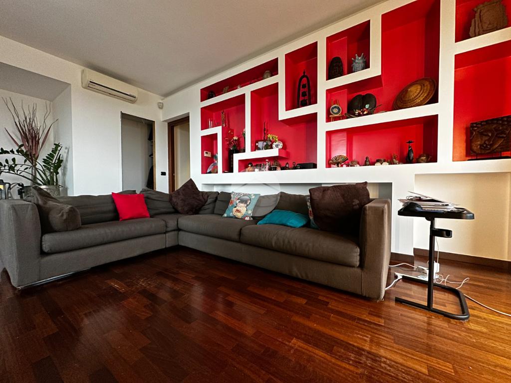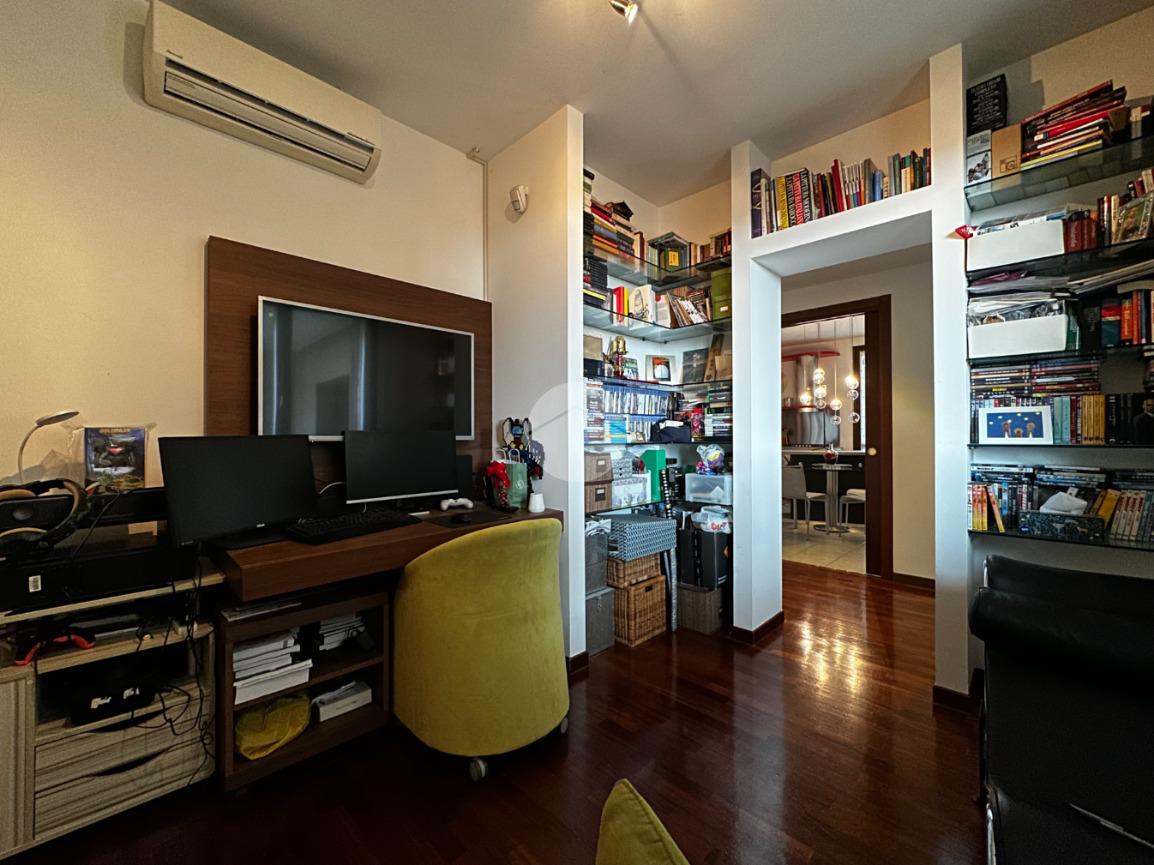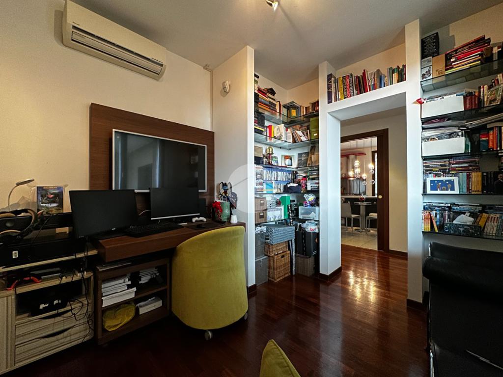L’appartamento, curato nei dettagli da un architetto, si presenta in condizioni impeccabili, con pavimenti in parquet, controsoffitti con faretti, pareti in cartongesso studiate come librerie e finiture di design che creano un’atmosfera calda e raffinata. È dotato di aria condizionata, tende da sole, zanzariere e impianto d’allarme.
