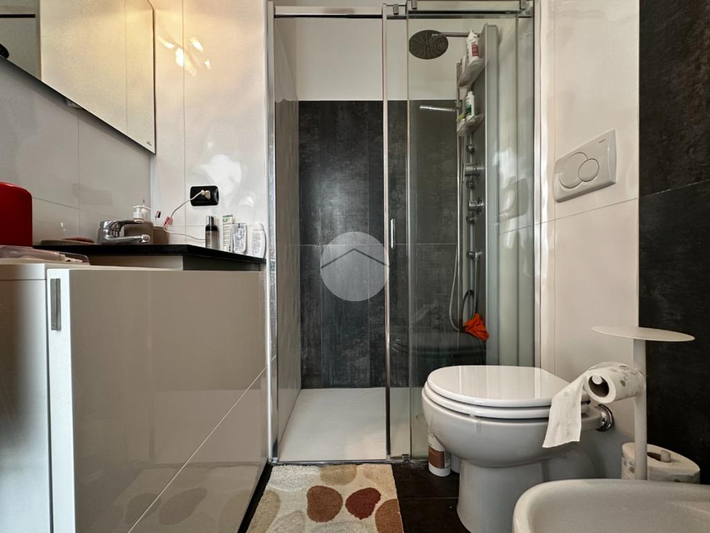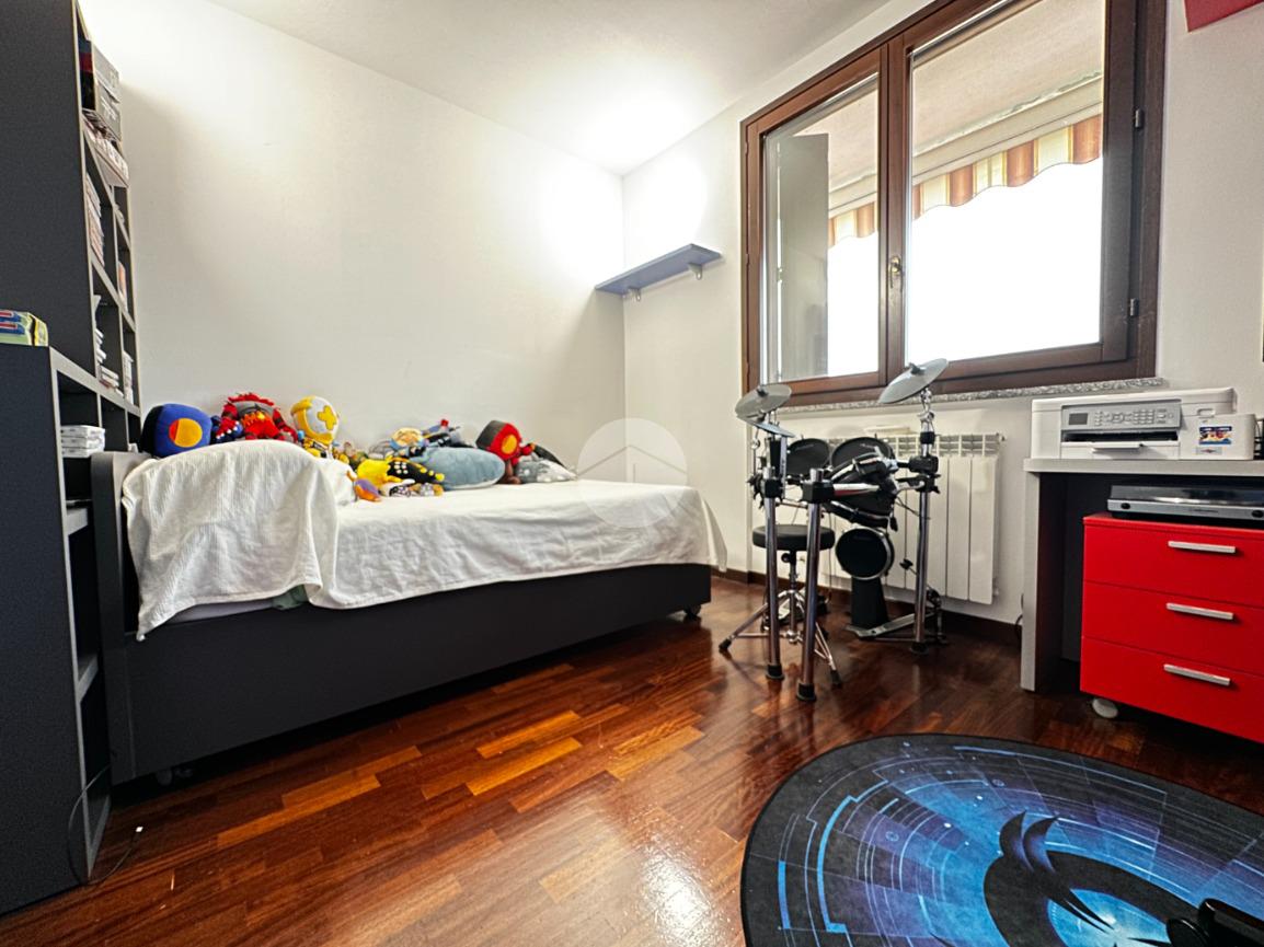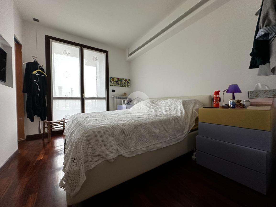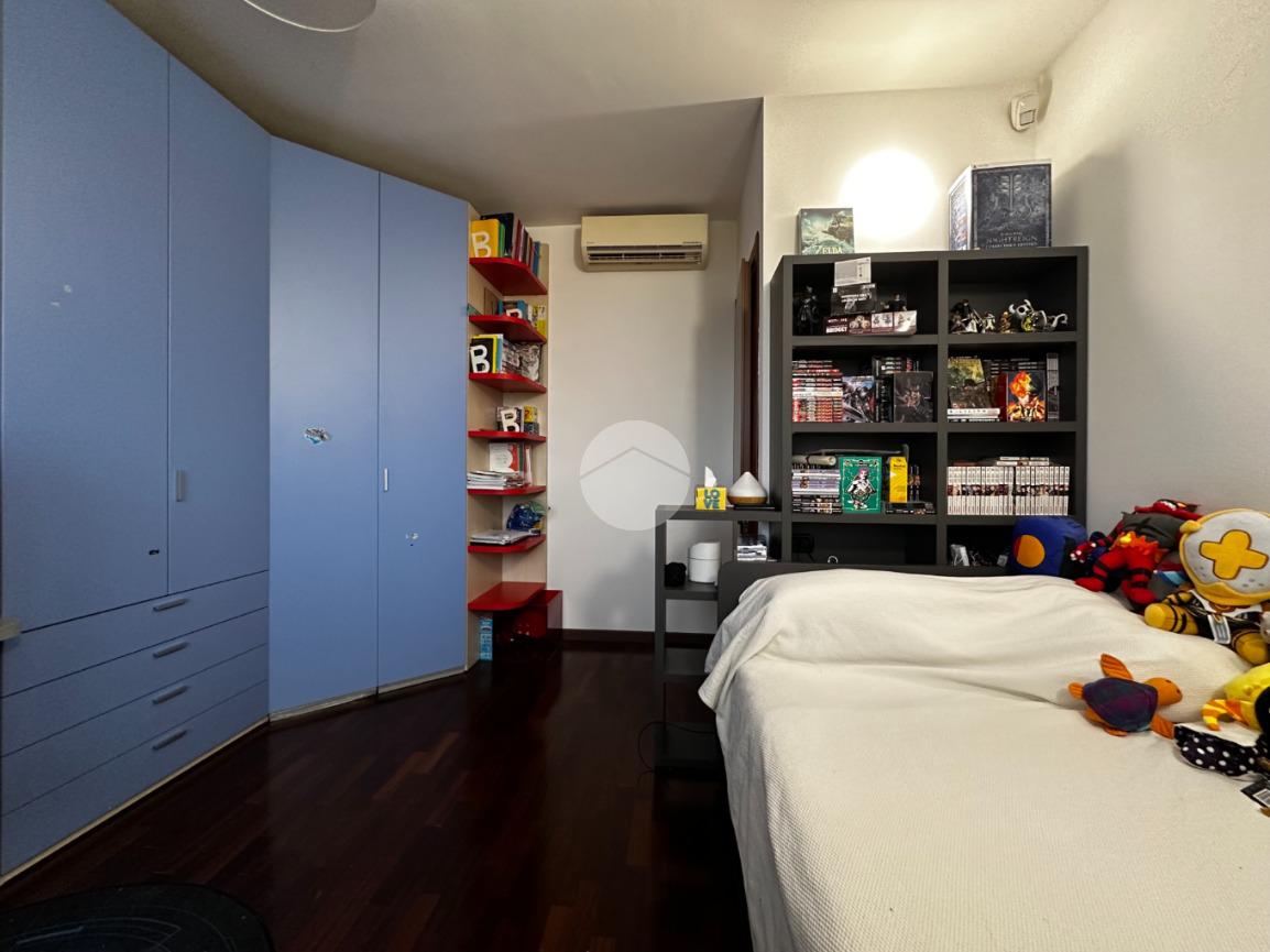 La zona notte comprende tre camere da letto, di cui una matrimoniale con cabina armadio e bagno privato finestrato con doccia, oltre a un ulteriore balcone. Completa l’abitazione un elegante bagno padronale con vasca idromassaggio, rifinito con materiali di pregio e pavimentazione in resina.