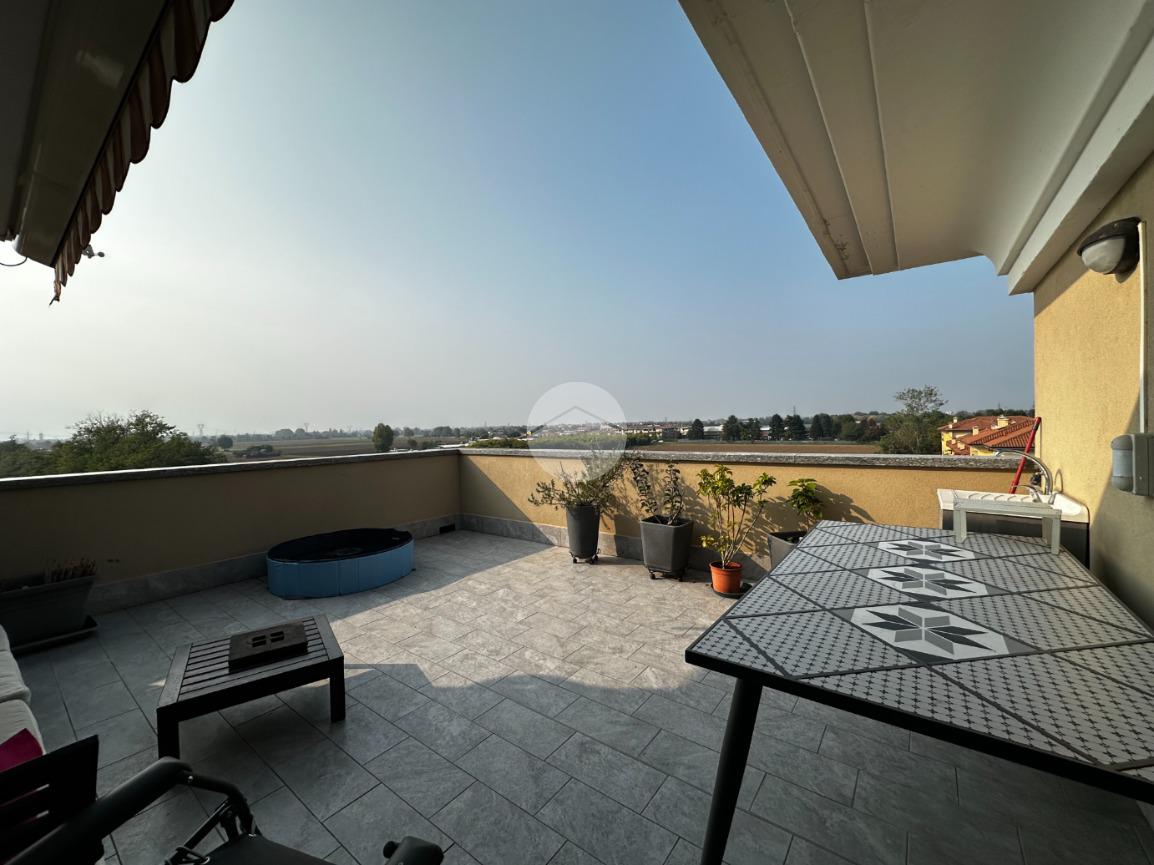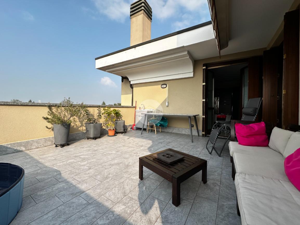 Nel centro del paese, in una via residenziale tranquilla e comoda con tutti i servizi, proponiamo un attico con TERRAZZO davvero unico nel suo genere. L’appartamento si trova al quarto e ultimo piano con ascensore, libero su tre lati e caratterizzato da ambienti luminosi, riservati e da una splendida vista panoramica sul verde.