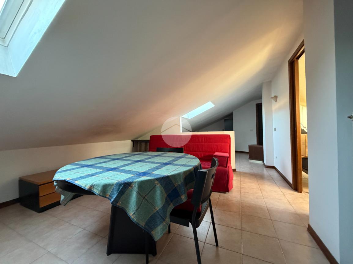 In una posizione strategica e comoda a tutti i servizi del paese, proponiamo una accogliente mansarda di due locali. L’abitazione si apre su un ingresso che conduce a un ripostiglio e prosegue verso il luminoso soggiorno con cucina a vista, la camera da letto e il bagno.