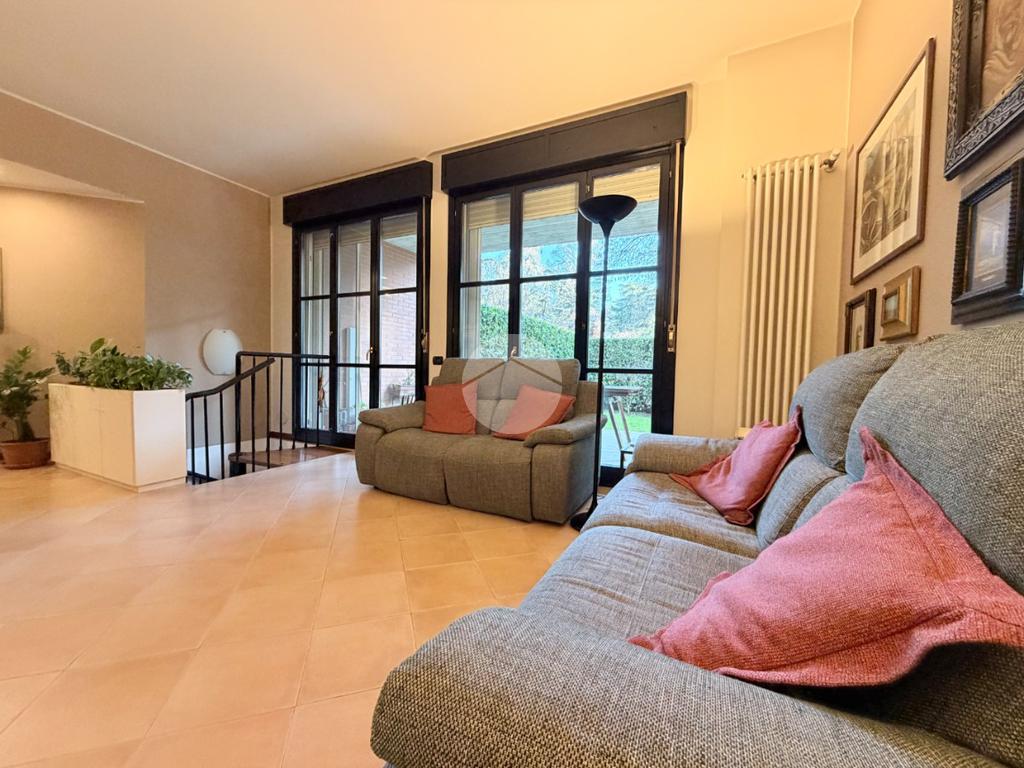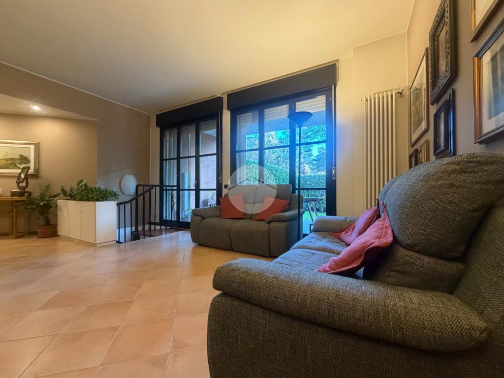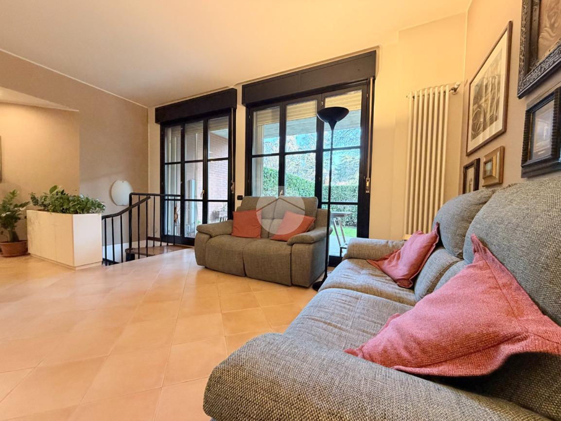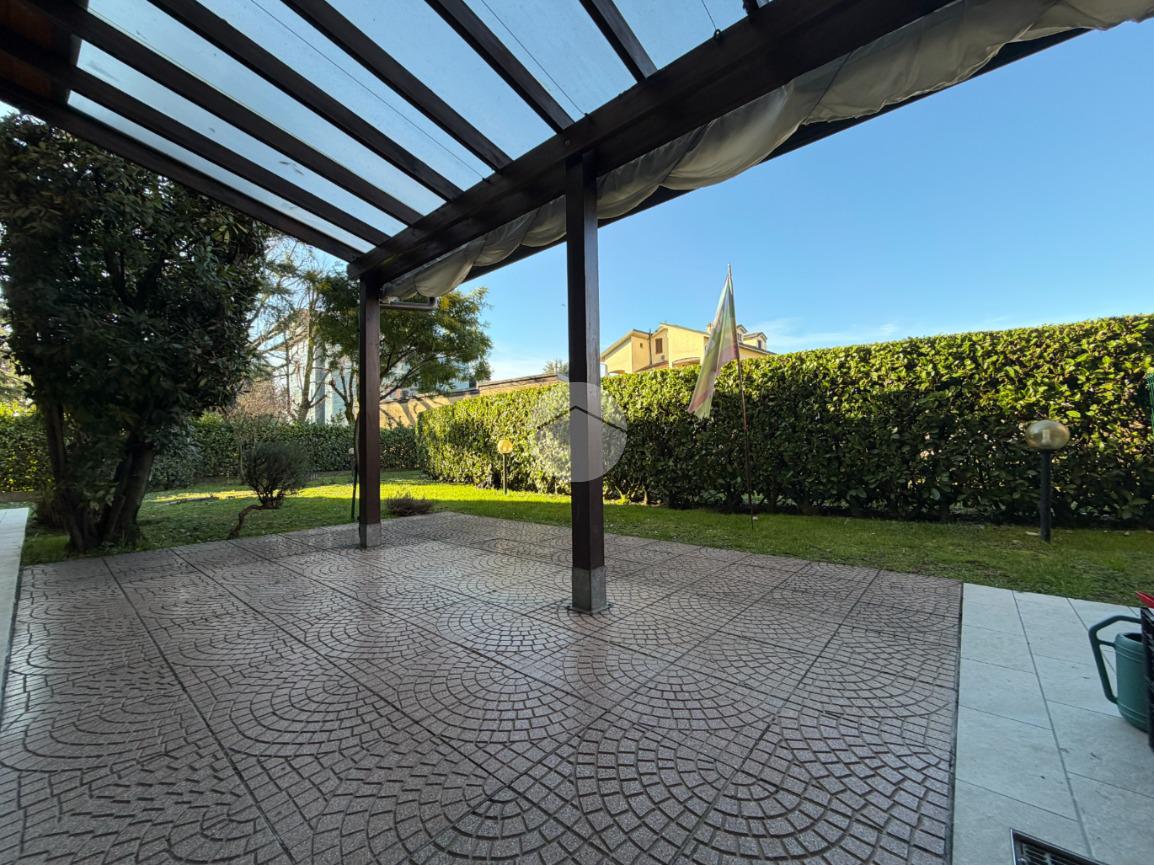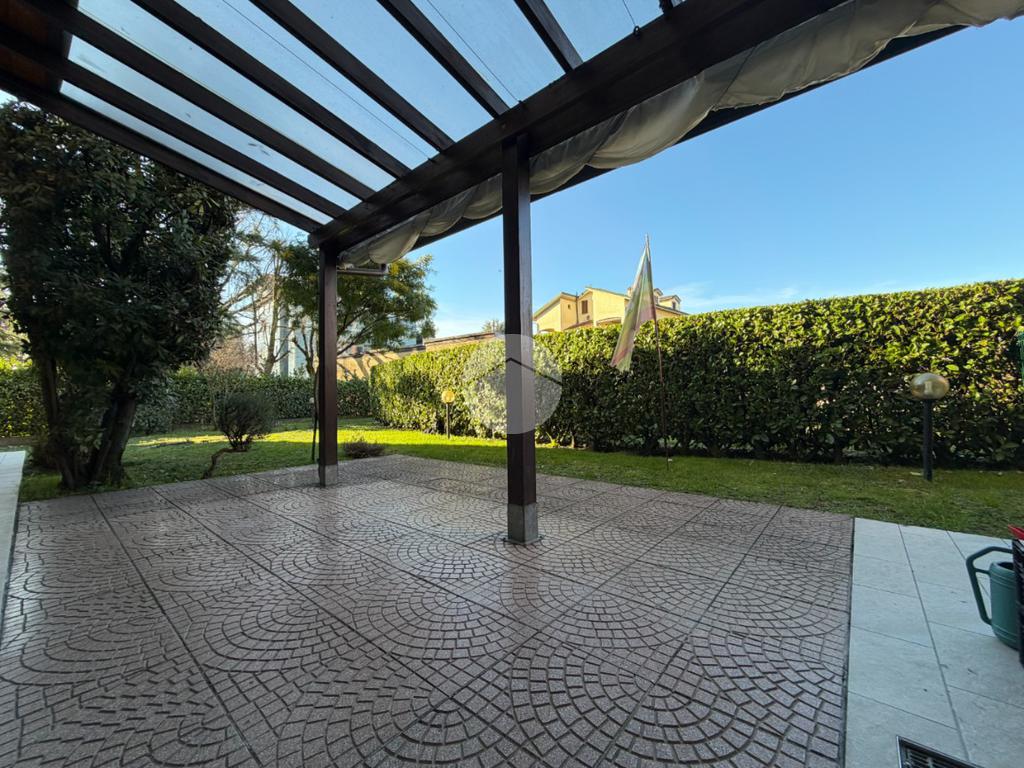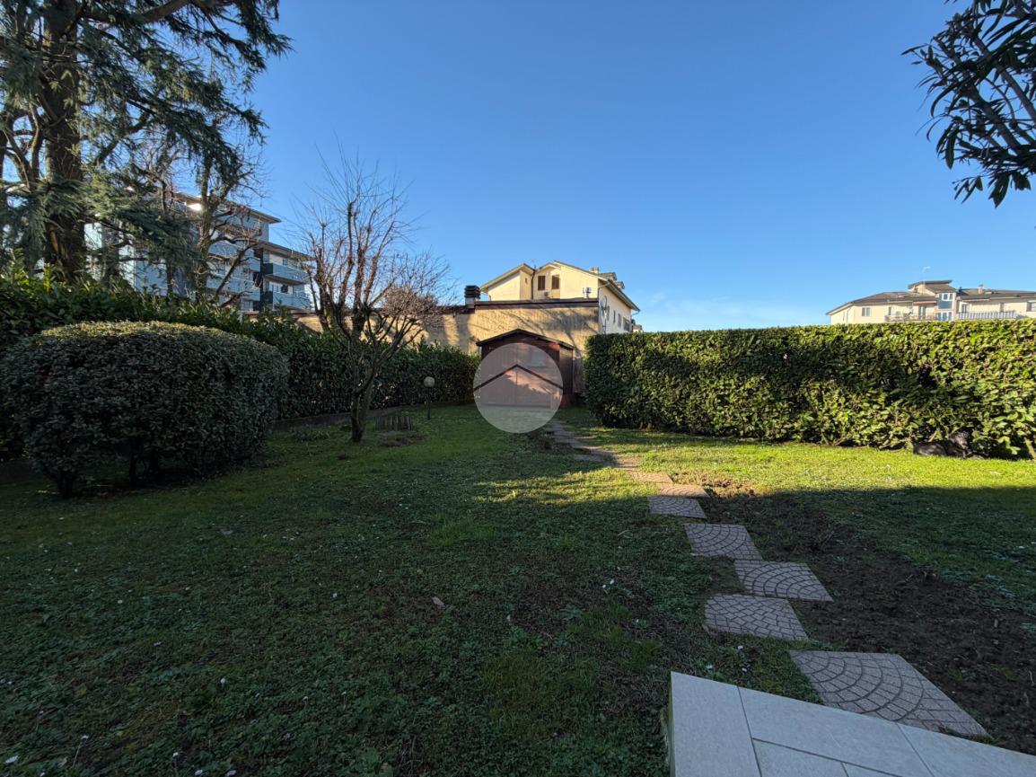 Proponiamo in vendita una soluzione unica nel suo genere, caratterizzata da un’ampia metratura e da uno splendido giardino privato che abbraccia l’abitazione sui tre lati, vero punto di forza della casa. Uno spazio verde di generose dimensioni, in parte piastrellato, perfetto per creare una zona living esterna, organizzare pranzi e cene all’aperto e vivere momenti di relax in totale privacy. L’immobile è ubicato nel centro del paese, comodo con tutti i principali servizi e allo stesso tempo inserito in una via tranquilla e riservata. La palazzina, di soli due piani e rifinita in parte con mattoni faccia a vista, si presenta curata ed elegante. Posto al piano terra, l’appartamento accoglie con un ingresso dove è stata realizzata una funzionale zona ripostiglio/guardaroba con specchi su misura che accompagna verso un ampio e luminoso soggiorno doppio. La cucina è abitabile e ben separata dalla zona living, ideale per la quotidianità familiare. La zona notte ospita tre camere da letto in parquet, tra cui una spaziosa matrimoniale, e doppi servizi entrambi finestrati, uno completo di doccia e l’altro di vasca. Tutti gli ambienti principali, soggiorno, cucina e camere, godono di accesso diretto al giardino, garantendo continuità tra interno ed esterno e una piacevole luminosità grazie alla tripla esposizione. Dal soggiorno, tramite una comoda scala in legno, si accede al piano sottostante dove troviamo un ampio locale oltre ad ulteriori due cantine e un secondo ingresso che rende particolarmente funzionale l’organizzazione degli spazi. Il box doppio in lunghezza di circa 31 mq completa la proprietà. La soluzione si presenta in ottime condizioni grazie all’attenta cura dei proprietari, con le porte extra capitolato e gli abbassamenti con faretti che valorizzano gli ambienti. L’immobile è dotato di inferriate, zanzariere, impianto di irrigazione per il giardino, tendone da sole, predisposizione per antifurto e aria condizionata, oltre a caldaia a condensazione con due termostati gestibili anche da remoto e videocitofono. Una casa pensata per offrire comfort, sicurezza e qualità abitativa in una posizione strategica e riservata.