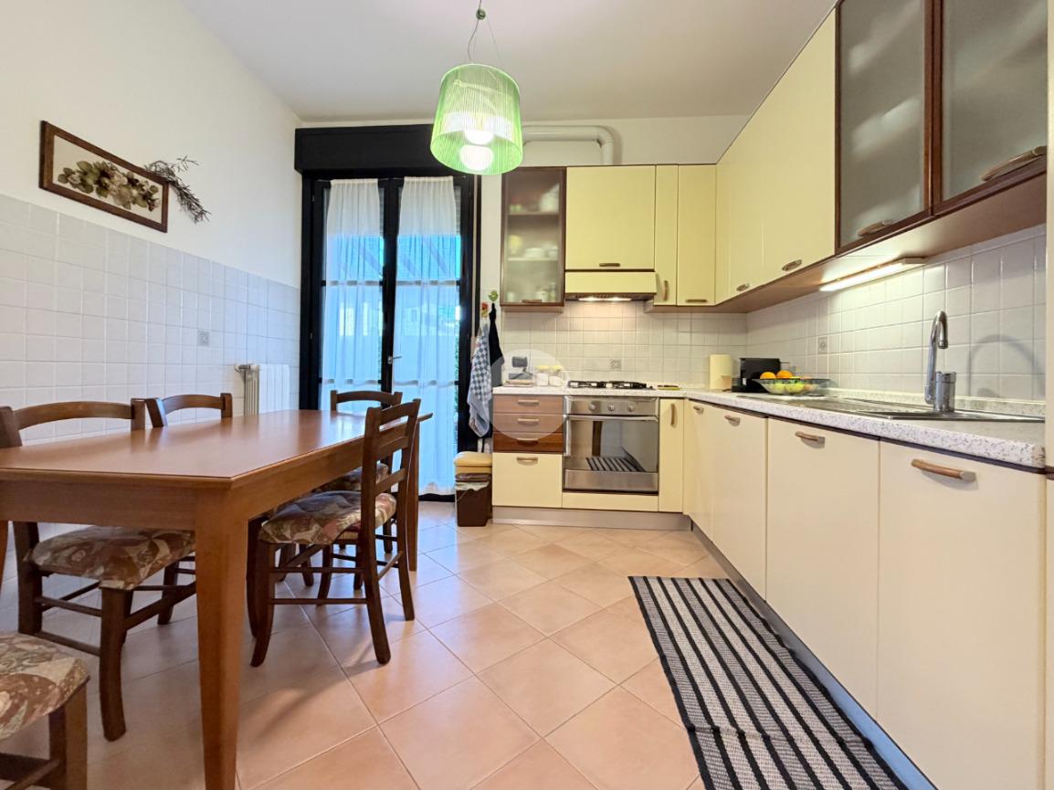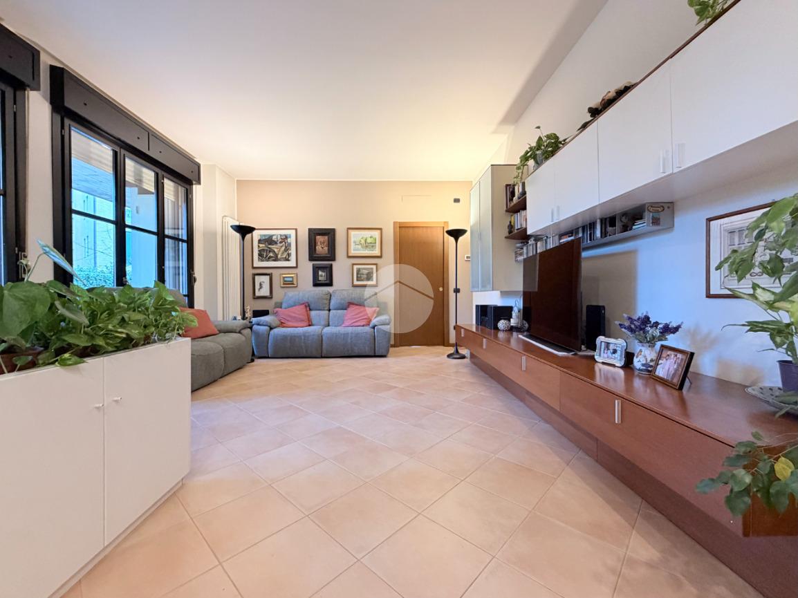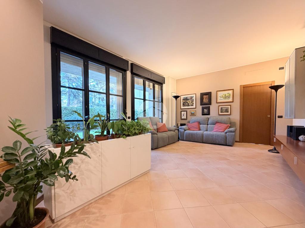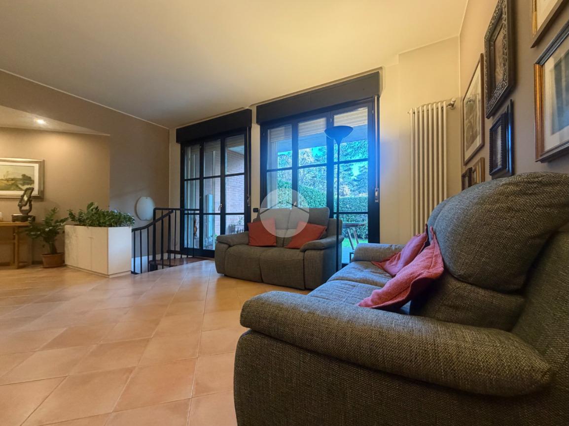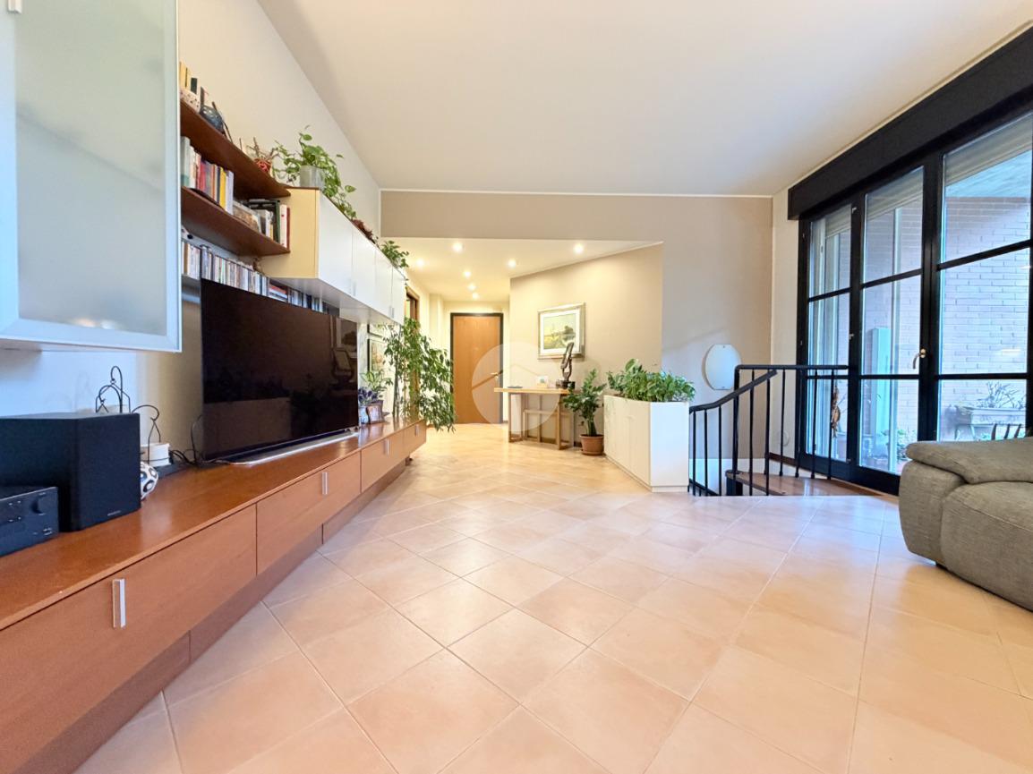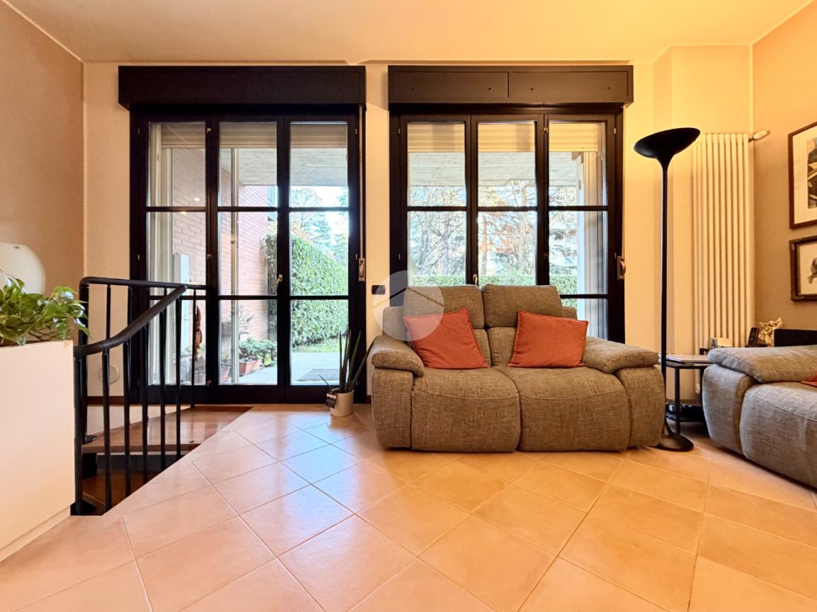 Proponiamo in vendita una soluzione unica nel suo genere, caratterizzata da un’ampia metratura e da uno splendido giardino privato che abbraccia l’abitazione sui tre lati, vero punto di forza della casa. Uno spazio verde di generose dimensioni, in parte piastrellato, perfetto per creare una zona living esterna, organizzare pranzi e cene all’aperto e vivere momenti di relax in totale privacy. L’immobile è ubicato nel centro del paese, comodo con tutti i principali servizi e allo stesso tempo inserito in una via tranquilla e riservata. La palazzina, di soli due piani e rifinita in parte con mattoni faccia a vista, si presenta curata ed elegante. Posto al piano terra, l’appartamento accoglie con un ingresso dove è stata realizzata una funzionale zona ripostiglio/guardaroba con specchi su misura che accompagna verso un ampio e luminoso soggiorno doppio. La cucina è abitabile e ben separata dalla zona living, ideale per la quotidianità familiare. La zona notte ospita tre camere da letto in parquet, tra cui una spaziosa matrimoniale, e doppi servizi entrambi finestrati, uno completo di doccia e l’altro di vasca. Tutti gli ambienti principali, soggiorno, cucina e camere, godono di accesso diretto al giardino, garantendo continuità tra interno ed esterno e una piacevole luminosità grazie alla tripla esposizione. Dal soggiorno, tramite una comoda scala in legno, si accede al piano sottostante dove troviamo un ampio locale oltre ad ulteriori due cantine e un secondo ingresso che rende particolarmente funzionale l’organizzazione degli spazi. Il box doppio in lunghezza di circa 31 mq completa la proprietà. La soluzione si presenta in ottime condizioni grazie all’attenta cura dei proprietari, con le porte extra capitolato e gli abbassamenti con faretti che valorizzano gli ambienti. L’immobile è dotato di inferriate, zanzariere, impianto di irrigazione per il giardino, tendone da sole, predisposizione per antifurto e aria condizionata, oltre a caldaia a condensazione con due termostati gestibili anche da remoto e videocitofono. Una casa pensata per offrire comfort, sicurezza e qualità abitativa in una posizione strategica e riservata.