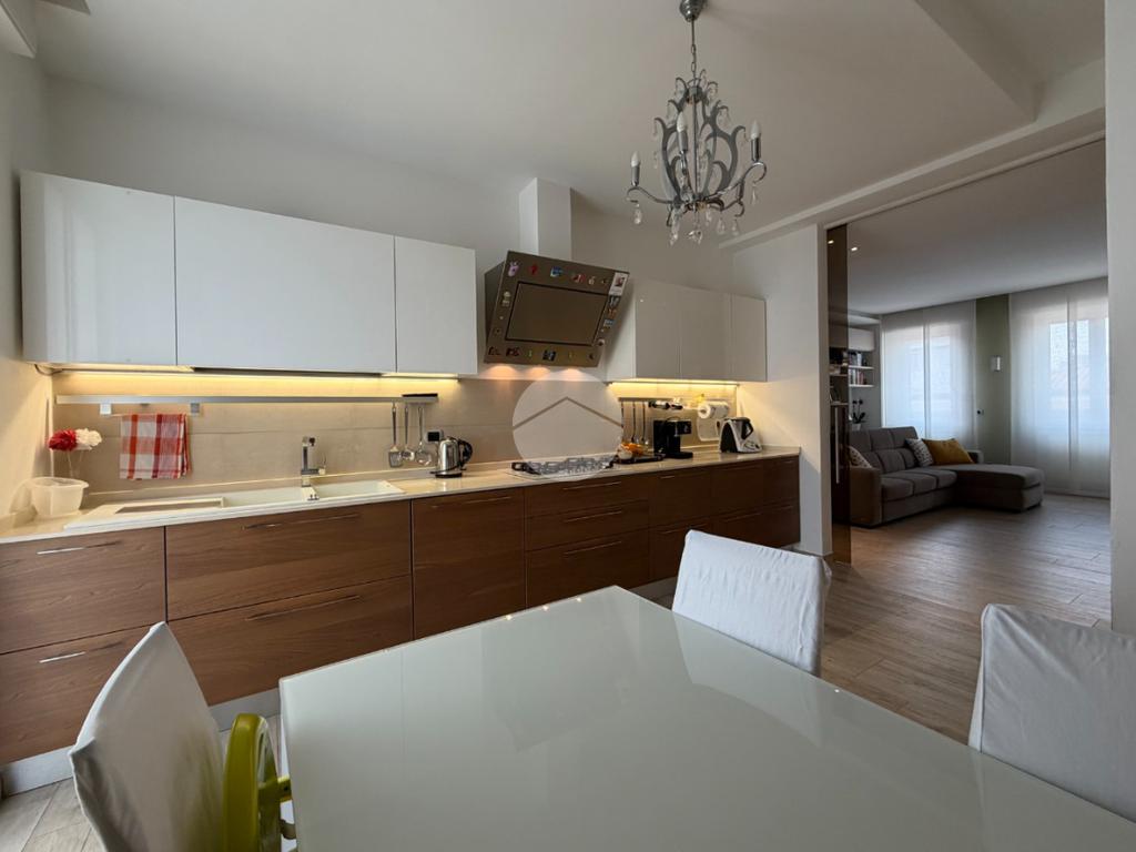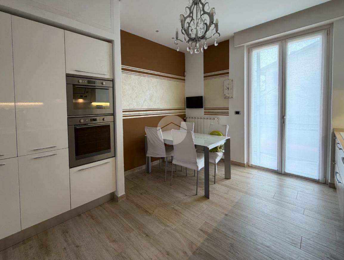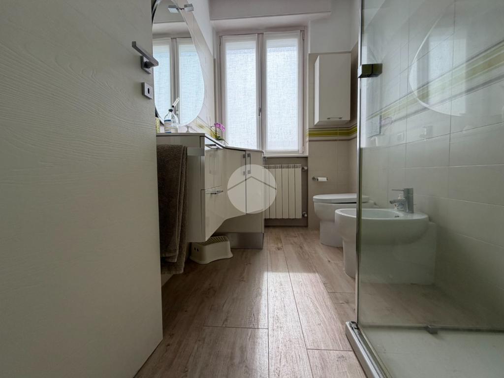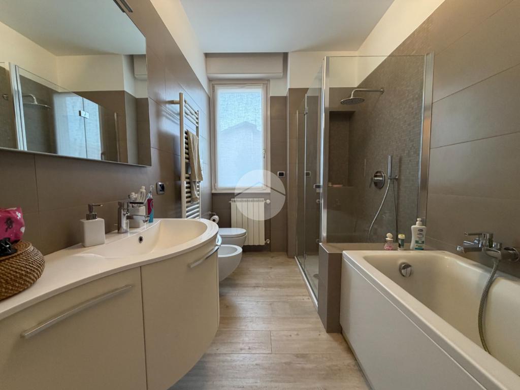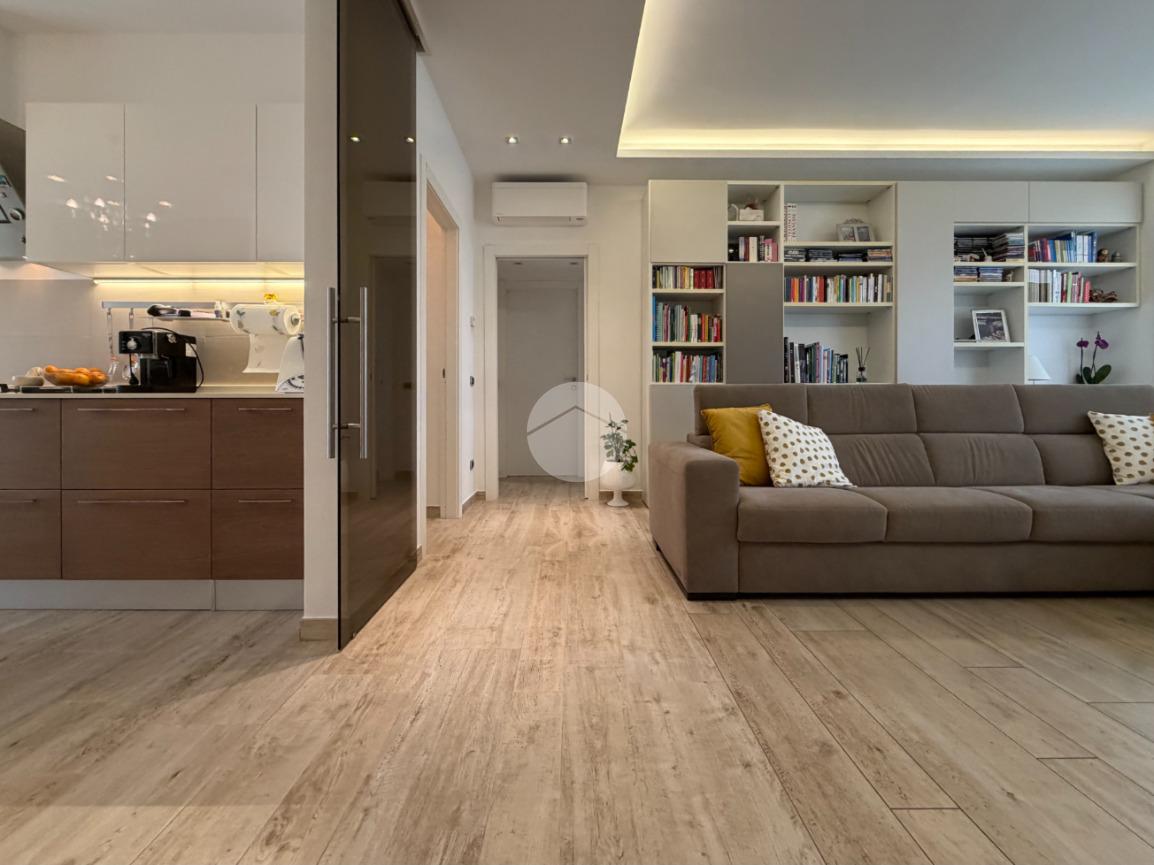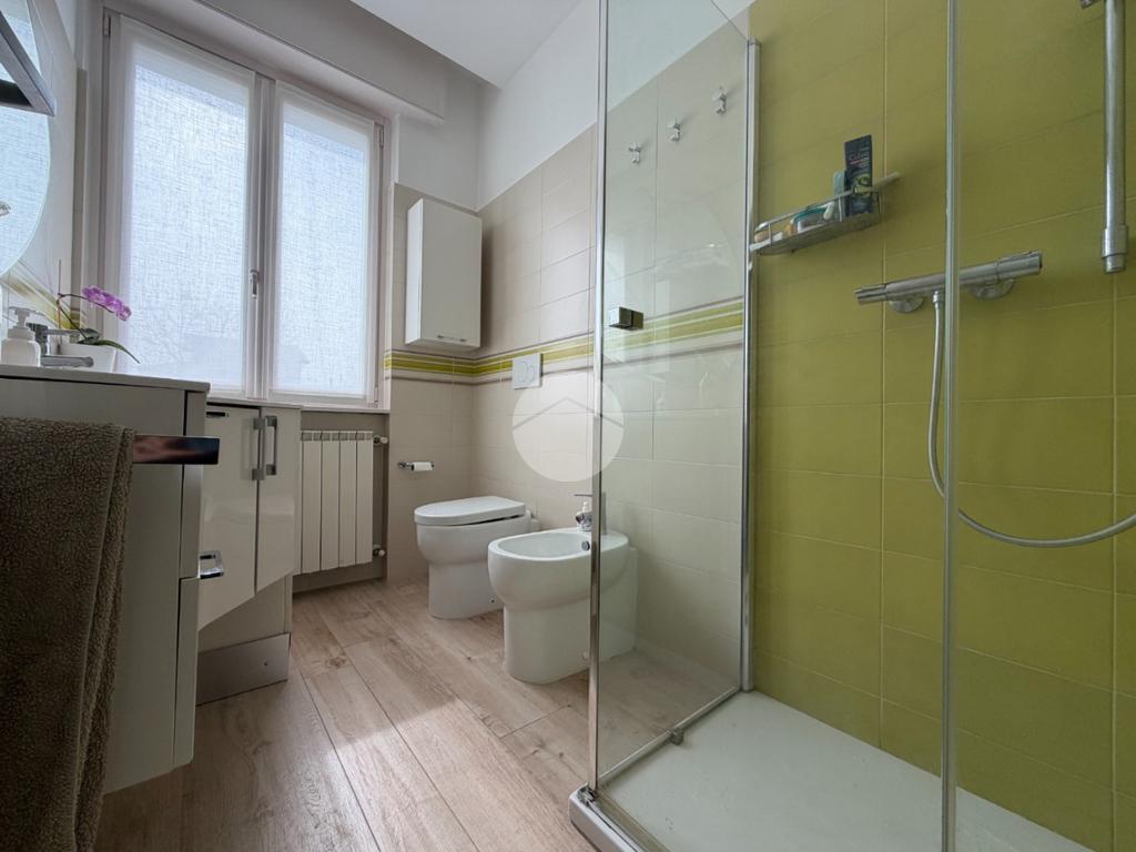 Proponiamo in vendita splendido appartamento di tre locali, recentemente ristrutturato e mantenuto in condizioni impeccabili grazie alla cura dei proprietari. L’ingresso si apre su un comodo e luminoso soggiorno, collegato a una cucina abitabile di ampie dimensioni, separata da una doppia porta in vetro fumé che divide elegantemente gli ambienti mantenendo al tempo stesso continuità e luminosità. La zona notte è composta da due camere matrimoniali e doppi servizi entrambi finestrati: uno dotato di doccia e l’altro con vasca e doccia. È presente inoltre un pratico antibagno sfruttato con armadiatura, ideale come spazio ripostiglio. Dalla cucina e da una delle camere si accede a un comodo balcone, mentre dalla camera matrimoniale si accede anche a un ulteriore balcone privato. L’appartamento si presenta in ottime condizioni, grazie a una recente ristrutturazione interna e a finiture moderne come pavimentazione in grès porcellanato effetto parquet, porte interne in legno sbiancato extra capitolato, infissi in PVC con doppio vetro, zanzariere e inferriate, tapparelle motorizzate in alluminio su tutte le finestre, impianto di antifurto e aria condizionata con pompa di calore. Gli alti soffitti sono valorizzati da eleganti abbassamenti in cartongesso che, oltre a dare carattere agli ambienti, permettono una gestione personalizzata dell’illuminazione e creano una moderna veletta per il binario delle tende. I bagni sono rifiniti con materiali di qualità e dotati di box doccia in cristallo da 10 mm marca Vismara. La casa è stata progettata in modo funzionale e razionale, così da sfruttare al meglio ogni spazio, e si presenta tenuta in modo impeccabile. Completano la proprietà una cantina, oltre alla quota di comproprietà con i restanti condomini del fabbricato sia di ampi locali comuni posti al piano sottotetto sia al piano seminterrato