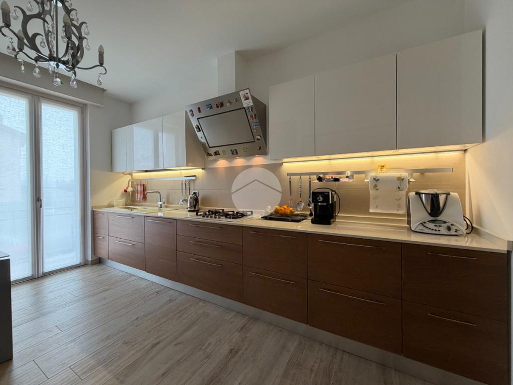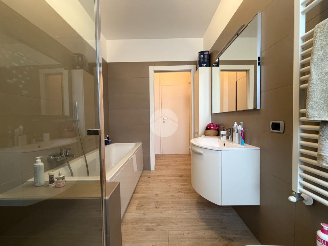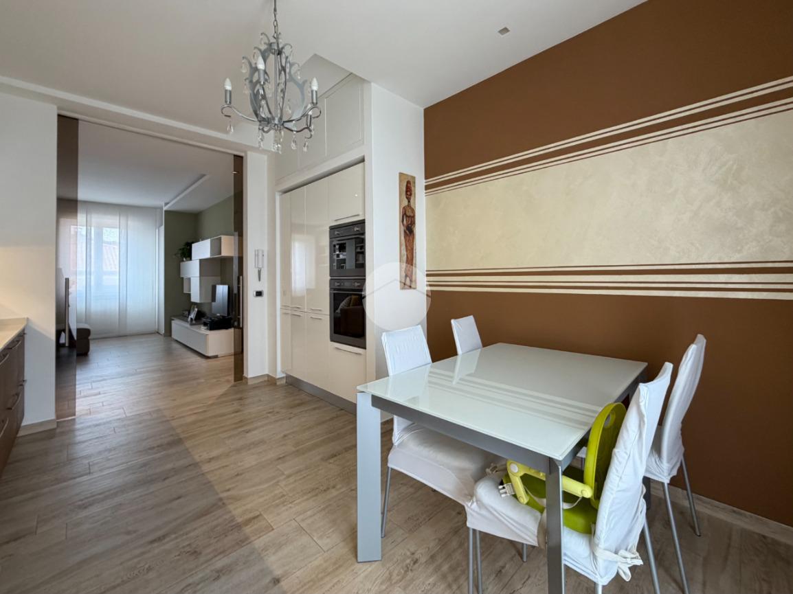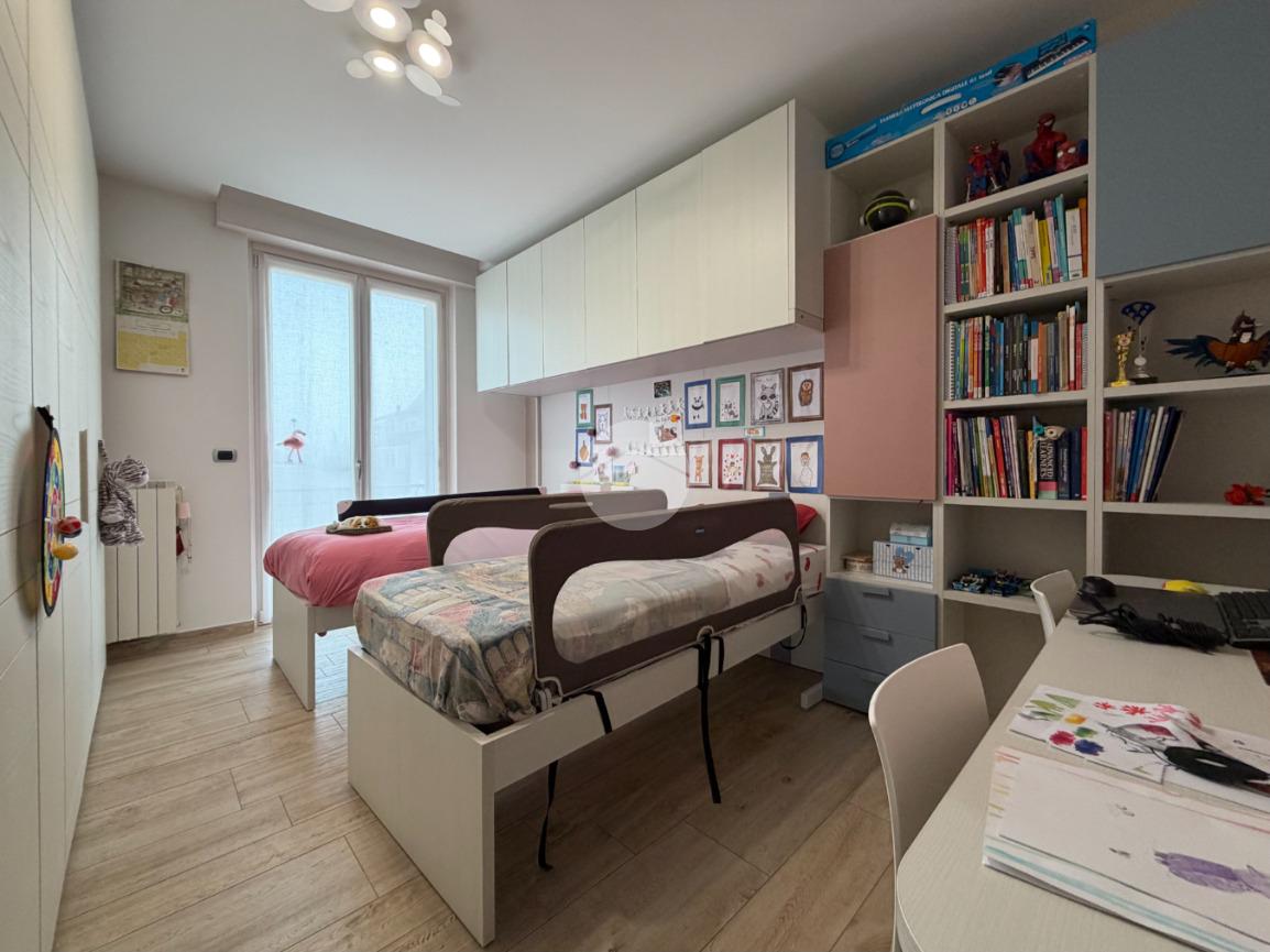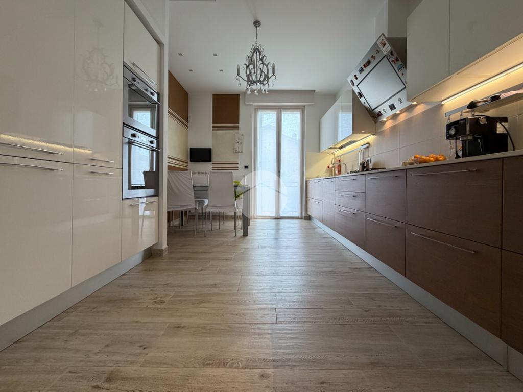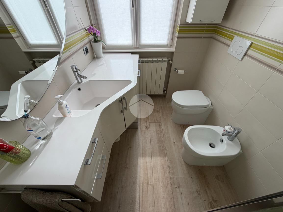 Proponiamo in vendita splendido appartamento di tre locali, recentemente ristrutturato e mantenuto in condizioni impeccabili grazie alla cura dei proprietari. L’ingresso si apre su un comodo e luminoso soggiorno, collegato a una cucina abitabile di ampie dimensioni, separata da una doppia porta in vetro fumé che divide elegantemente gli ambienti mantenendo al tempo stesso continuità e luminosità. La zona notte è composta da due camere matrimoniali e doppi servizi entrambi finestrati: uno dotato di doccia e l’altro con vasca e doccia. È presente inoltre un pratico antibagno sfruttato con armadiatura, ideale come spazio ripostiglio. Dalla cucina e da una delle camere si accede a un comodo balcone, mentre dalla camera matrimoniale si accede anche a un ulteriore balcone privato. L’appartamento si presenta in ottime condizioni, grazie a una recente ristrutturazione interna e a finiture moderne come pavimentazione in grès porcellanato effetto parquet, porte interne in legno sbiancato extra capitolato, infissi in PVC con doppio vetro, zanzariere e inferriate, tapparelle motorizzate in alluminio su tutte le finestre, impianto di antifurto e aria condizionata con pompa di calore. Gli alti soffitti sono valorizzati da eleganti abbassamenti in cartongesso che, oltre a dare carattere agli ambienti, permettono una gestione personalizzata dell’illuminazione e creano una moderna veletta per il binario delle tende. I bagni sono rifiniti con materiali di qualità e dotati di box doccia in cristallo da 10 mm marca Vismara. La casa è stata progettata in modo funzionale e razionale, così da sfruttare al meglio ogni spazio, e si presenta tenuta in modo impeccabile. Completano la proprietà una cantina, oltre alla quota di comproprietà con i restanti condomini del fabbricato sia di ampi locali comuni posti al piano sottotetto sia al piano seminterrato