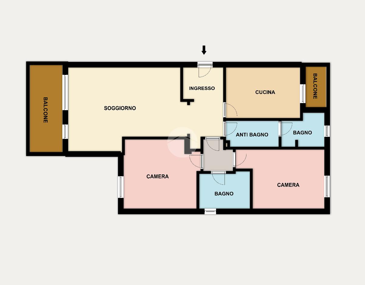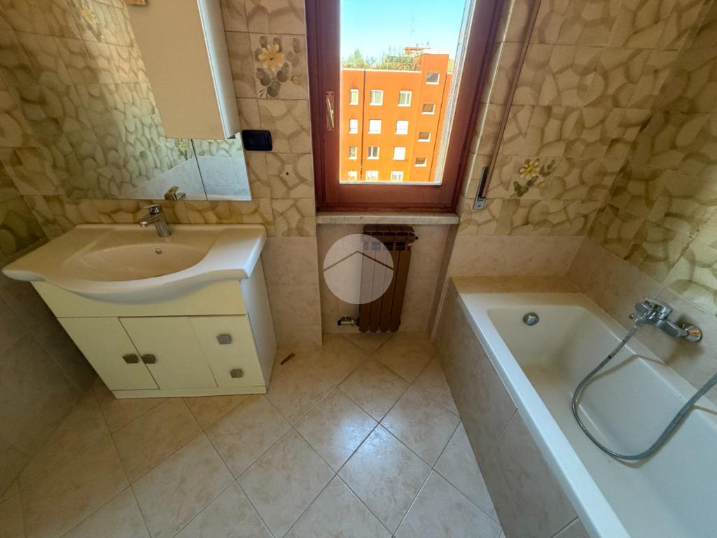 L’immobile si apre su un comodo disimpegno semi a vista che accompagna verso l’ampio soggiorno con affaccio sul balcone, mentre la cucina abitabile dispone di un secondo balcone di servizio. È presente un primo bagno finestrato con doccia, collegato a un ampio disimpegno utilizzabile come ripostiglio e lavanderia. La zona notte, ben separata, ospita due spaziose camere da letto e un secondo bagno finestrato con vasca.