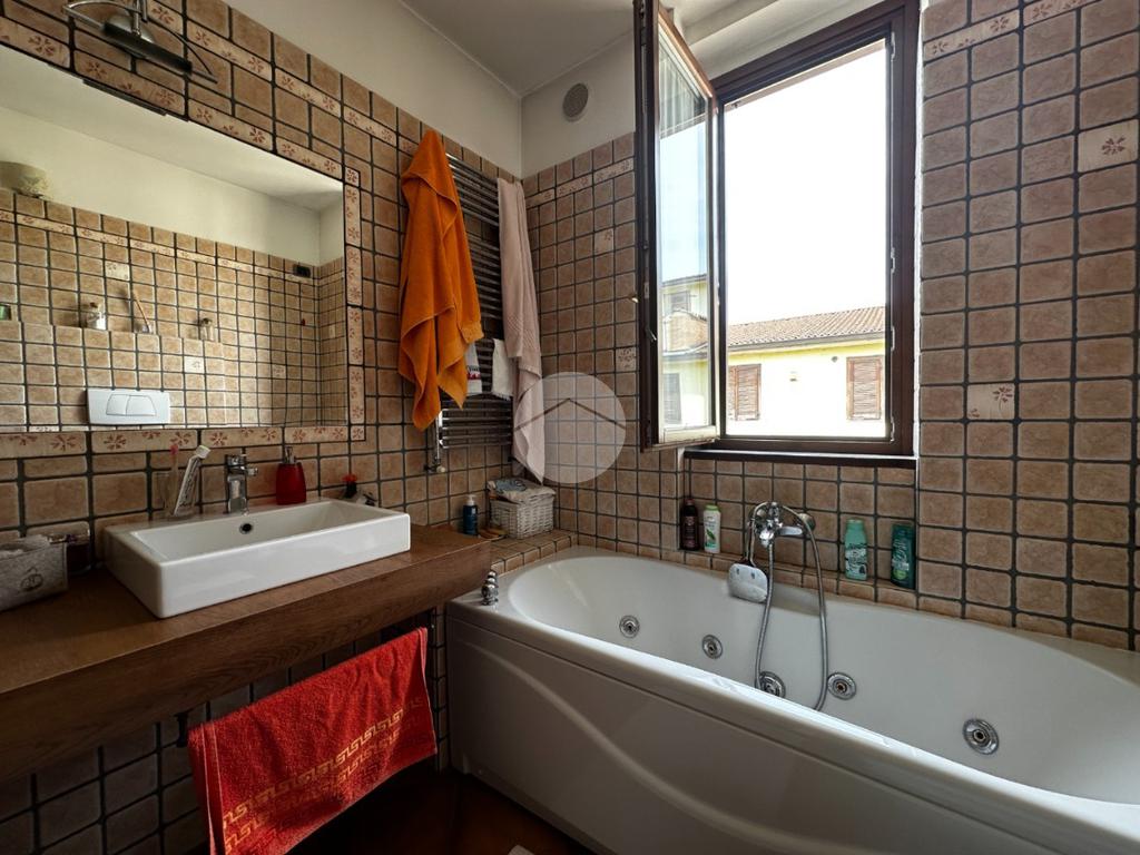 In tranquilla via chiusa, circondata da recenti costruzioni, proponiamo in vendita un appartamento situato al primo e ultimo piano in un contesto riservato di poche unità abitative. Accedendo all'abitazione si viene accolti da un ambiente caldo e ben organizzato: la zona giorno si apre su un luminoso soggiorno con camino, una cucina abitabile resa a vista grazie a un moderno bancone all'americana e una zona pranzo perfettamente integrata. Due ampie vetrate rendono l'ambiente particolarmente luminoso e conducono a un comodo balcone, ideale per momenti di relax all'aperto. La distribuzione interna è stata studiata per sfruttare al meglio ogni spazio. Un disimpegno conduce alla zona notte, composta da una camera matrimoniale, una seconda camera da letto, un ampio bagno padronale finestrato con vasca idromassaggio e un secondo bagno, anch'esso finestrato, con doccia. La doppia esposizione est-ovest garantisce una luminosità naturale durante tutto l'arco della giornata. Completa la proprietà la possibilità di acquistare uno o due box auto, disponibili anche singolarmente al prezzo di 15.000 ciascuno. Una soluzione ideale per chi cerca comfort, tranquillità e un contesto moderno, ben servito e silenzioso.