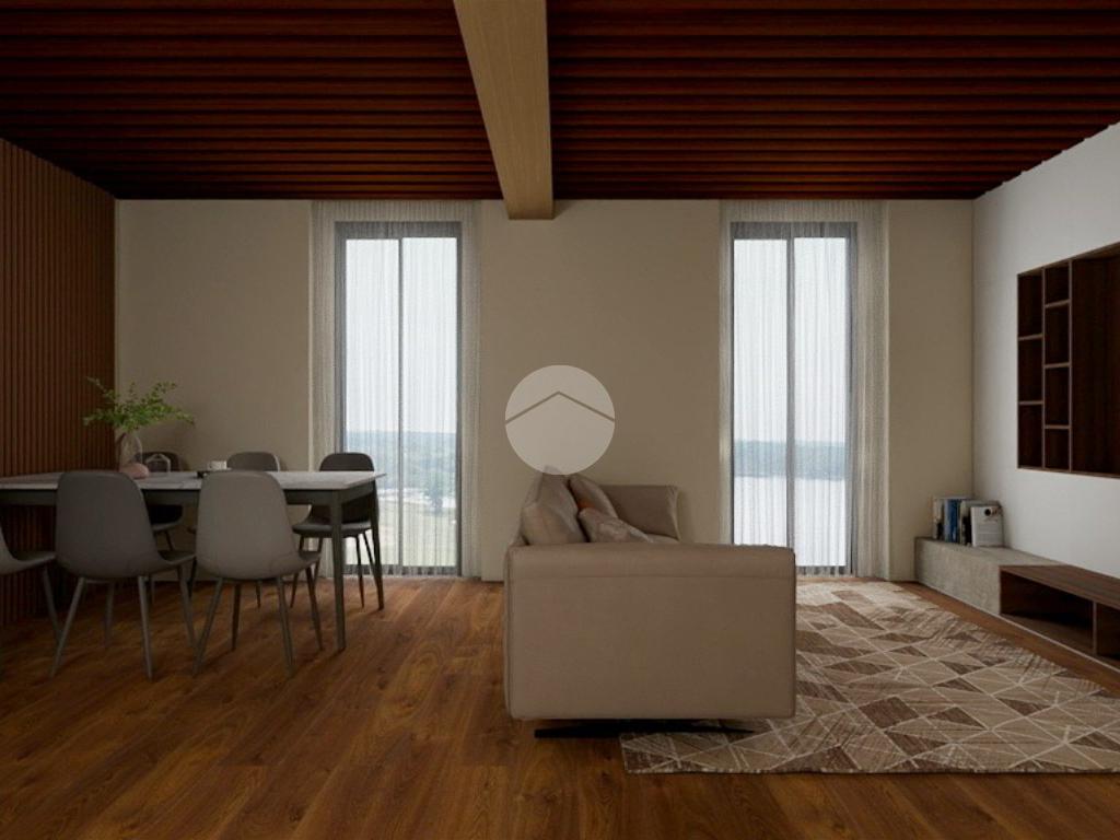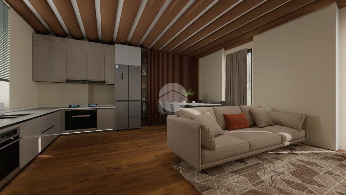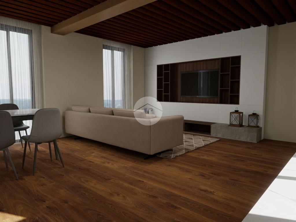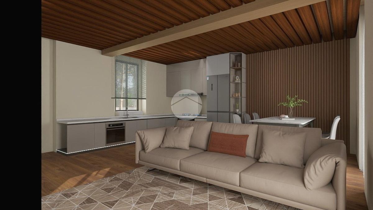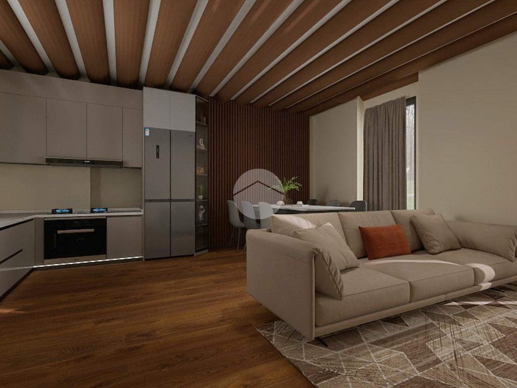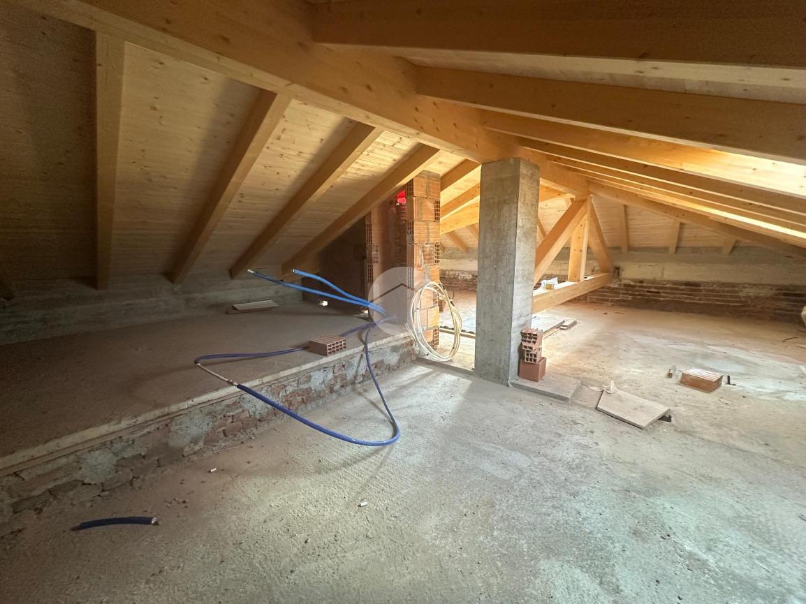 La zona giorno accoglie ambienti luminosi e funzionali, mentre il piano superiore, caratterizzato da un elegante soffitto mansardato con travi a vista, regala un’atmosfera autentica e accogliente, ideale per chi desidera vivere in uno spazio unico e ricco di personalità.
