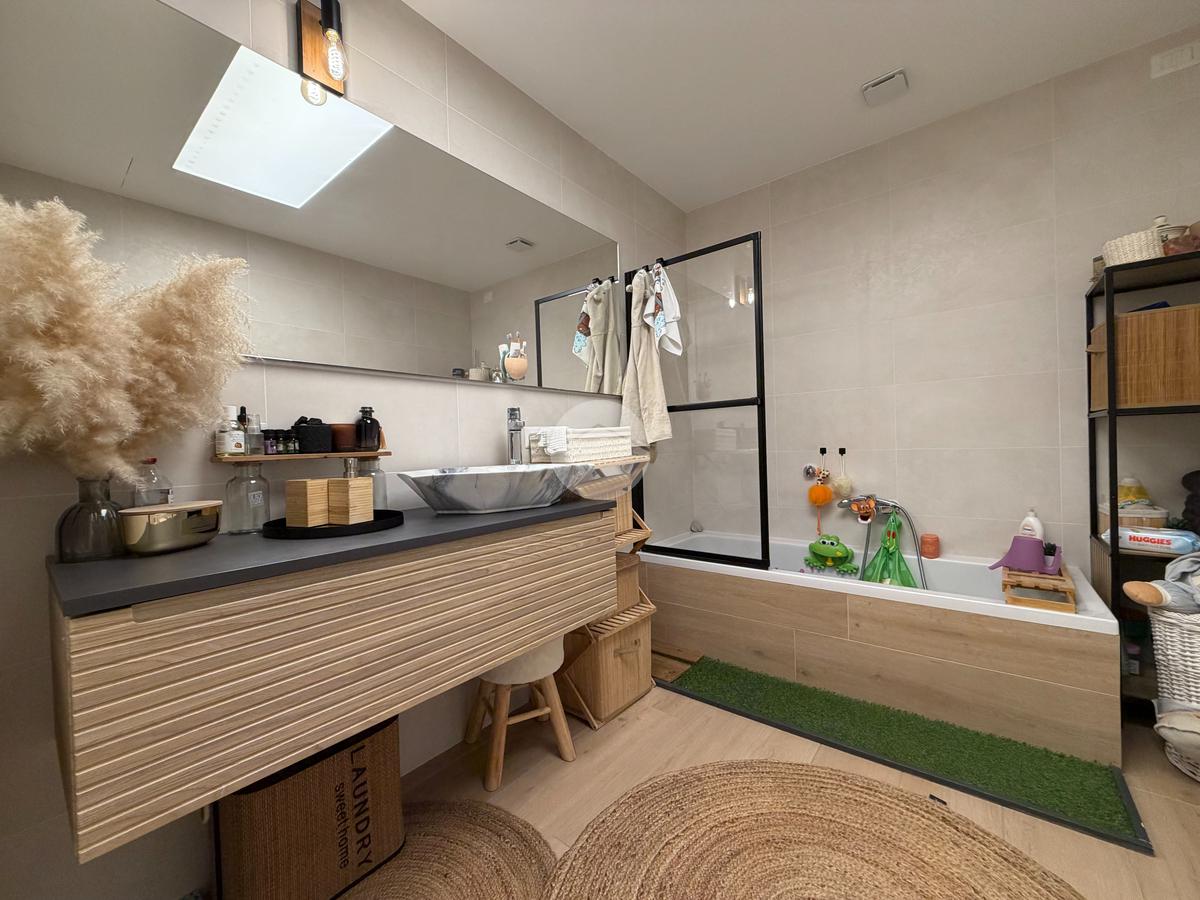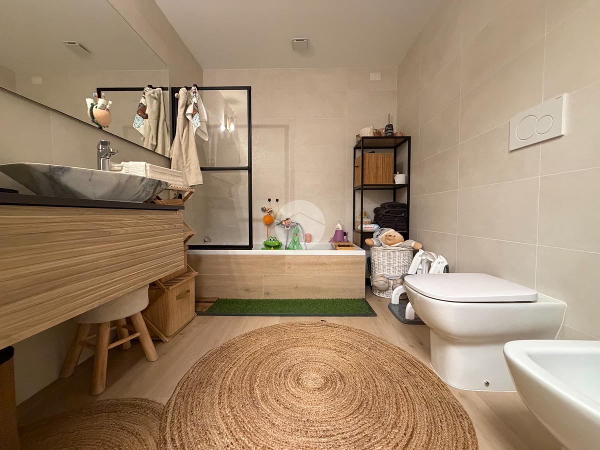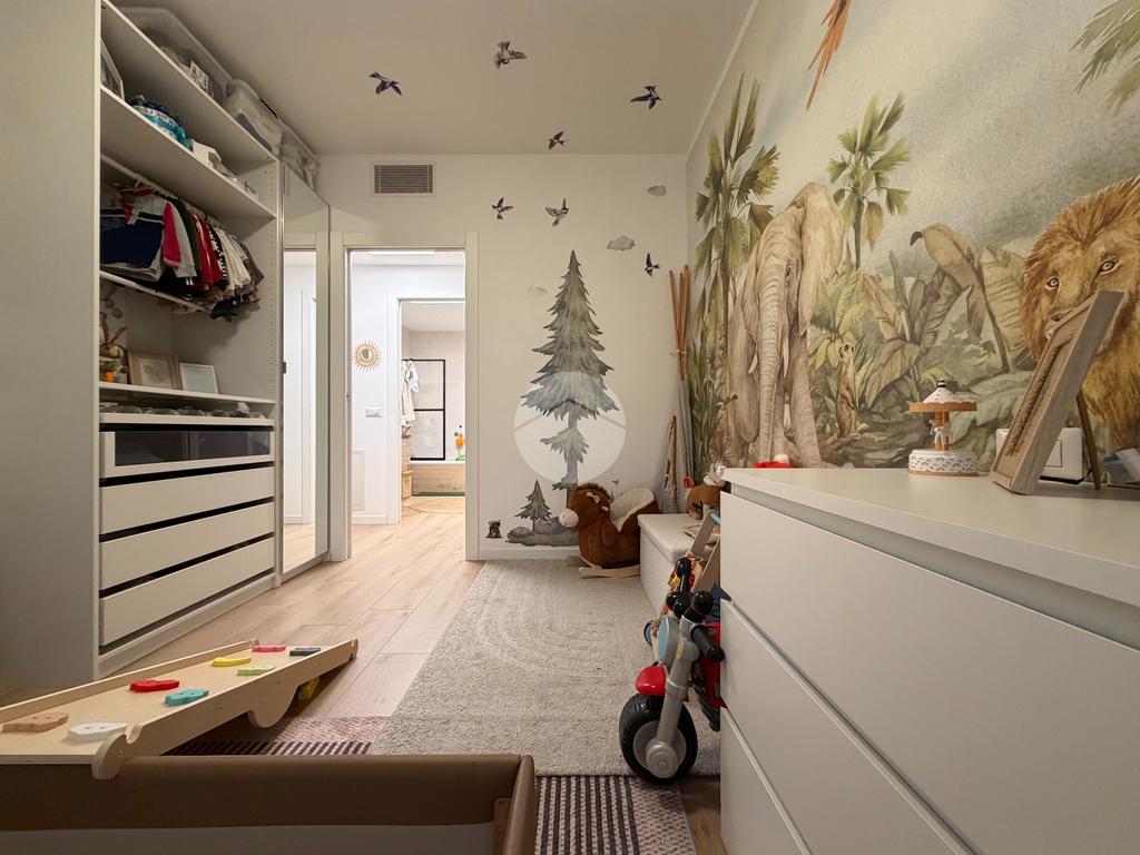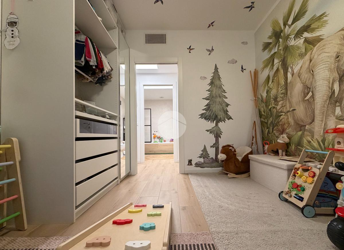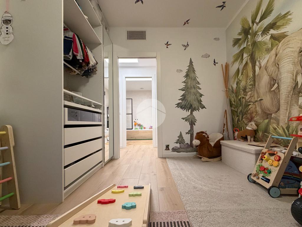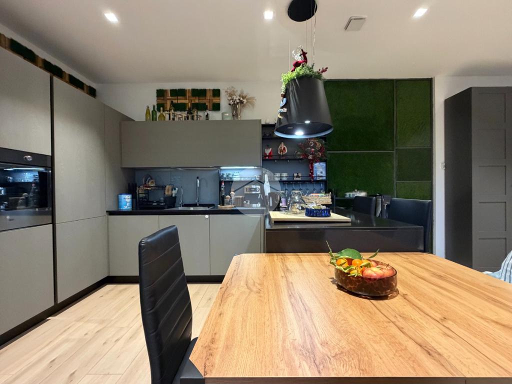 Gli interni sono stati curati nei minimi dettagli, con materiali di pregio e uno studio razionale degli spazi e dell’illuminazione. La pavimentazione è uniforme in effetto parquet in tutta la casa, conferendo eleganza e continuità agli ambienti.