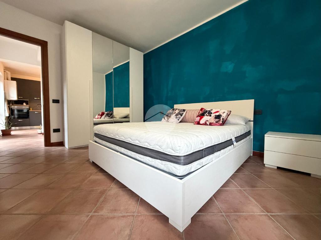 L’appartamento si apre su una luminosa zona soggiorno con cucina a vista, accogliente e ben distribuita. La zona notte comprende una spaziosa camera matrimoniale con accesso diretto a un bagno finestrato con doccia. Dal soggiorno si raggiunge un ulteriore disimpegno che conduce a una seconda camera e a un ampio bagno finestrato dotato di vasca.
