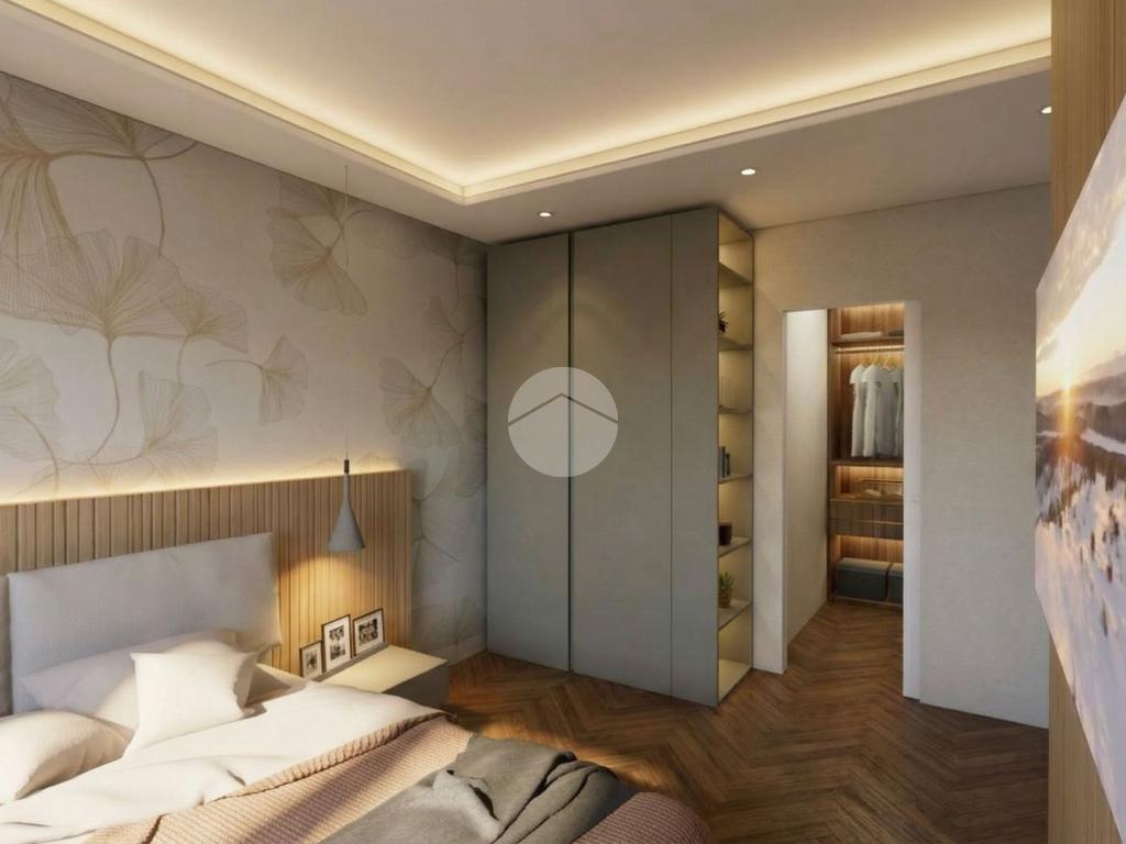 La zona notte, accessibile dal soggiorno, è composta da due camere da letto, di cui una matrimoniale con cabina armadio, da un bagno padronale finestrato con doccia e da un bagno di servizio, anch’esso con doccia.