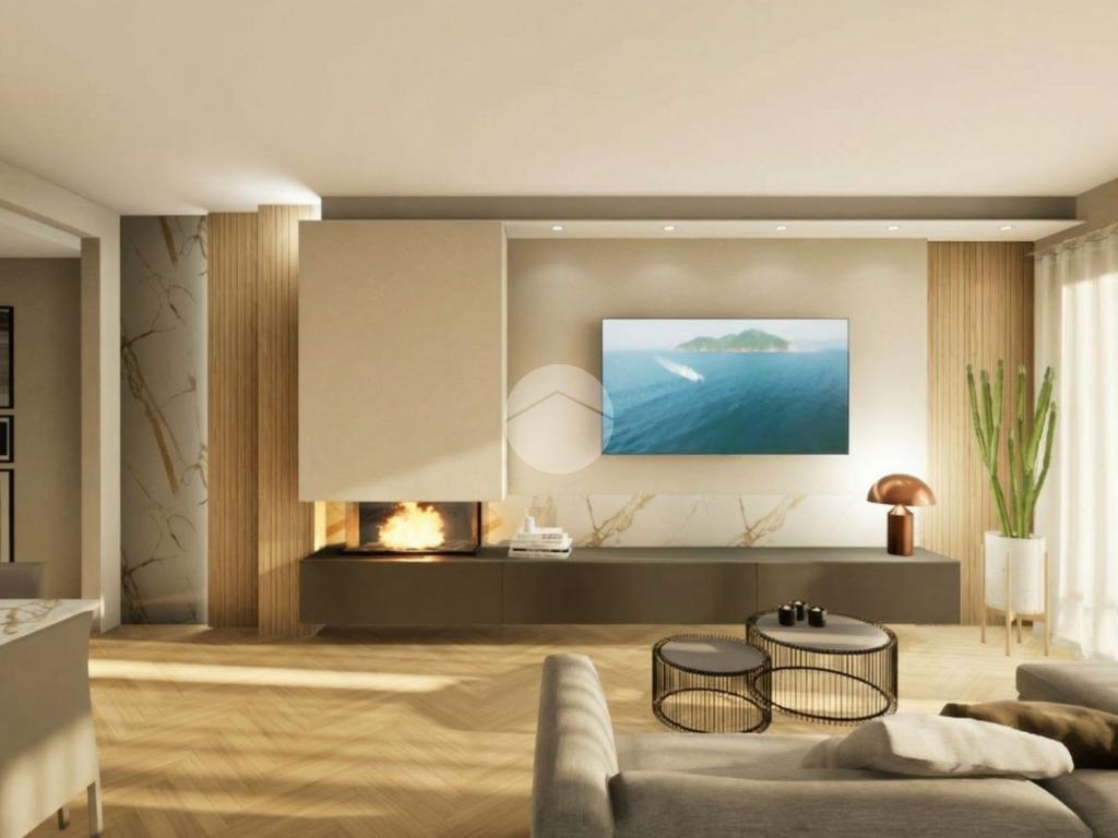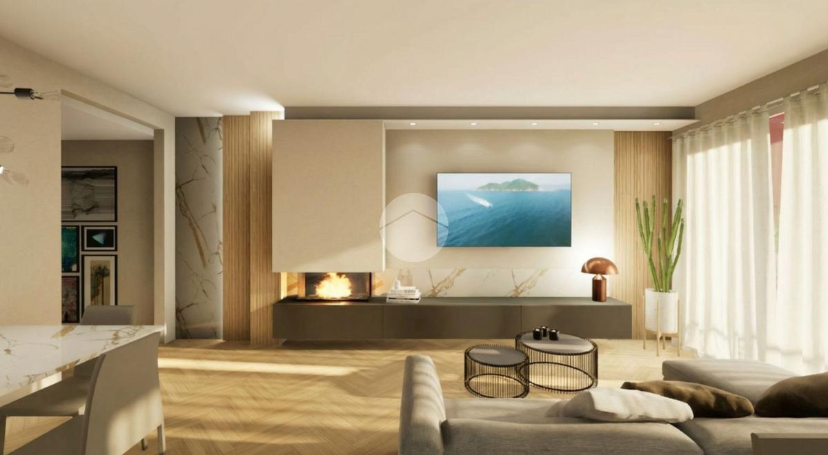 Dal disimpegno si accede alla zona living, ampia e luminosa, con cucina a vista, valorizzata da ampie vetrate che garantiscono un’eccellente luminosità naturale e creano una piacevole continuità tra gli spazi interni ed esterni.