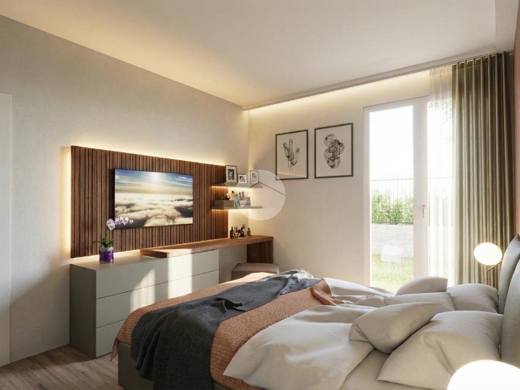 La zona notte comprende due ampie camere da letto, di cui una matrimoniale con cabina armadio, un bagno padronale finestrato con doccia e un bagno di servizio. Entrambe le camere hanno accesso diretto al giardino e doppia esposizione.