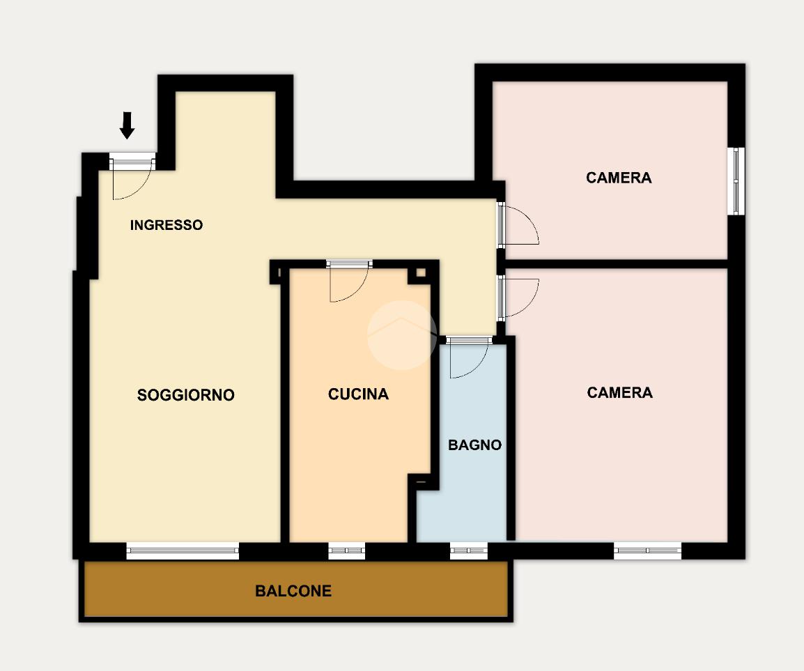 La soluzione è composta da ingresso, accogliente soggiorno, cucina abitabile, bagno finestrato con doccia, ampia camera matrimoniale e cameretta. Completa la proprietà un comodo balcone, accessibile sia dal soggiorno che dalla cucina, ideale per momenti di relax.