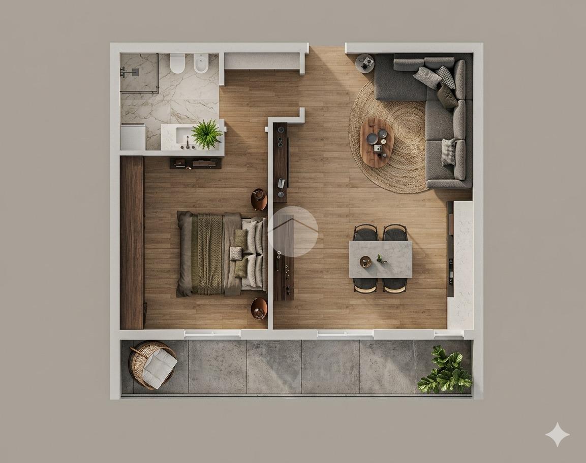 L’abitazione è composta da una luminosa zona giorno con cucina a vista, un bagno completamente rinnovato dotato di doccia e una confortevole camera matrimoniale. Sia il soggiorno che la camera offrono accesso diretto al balcone, ideale per momenti di relax all’aperto.