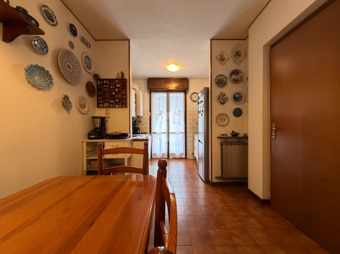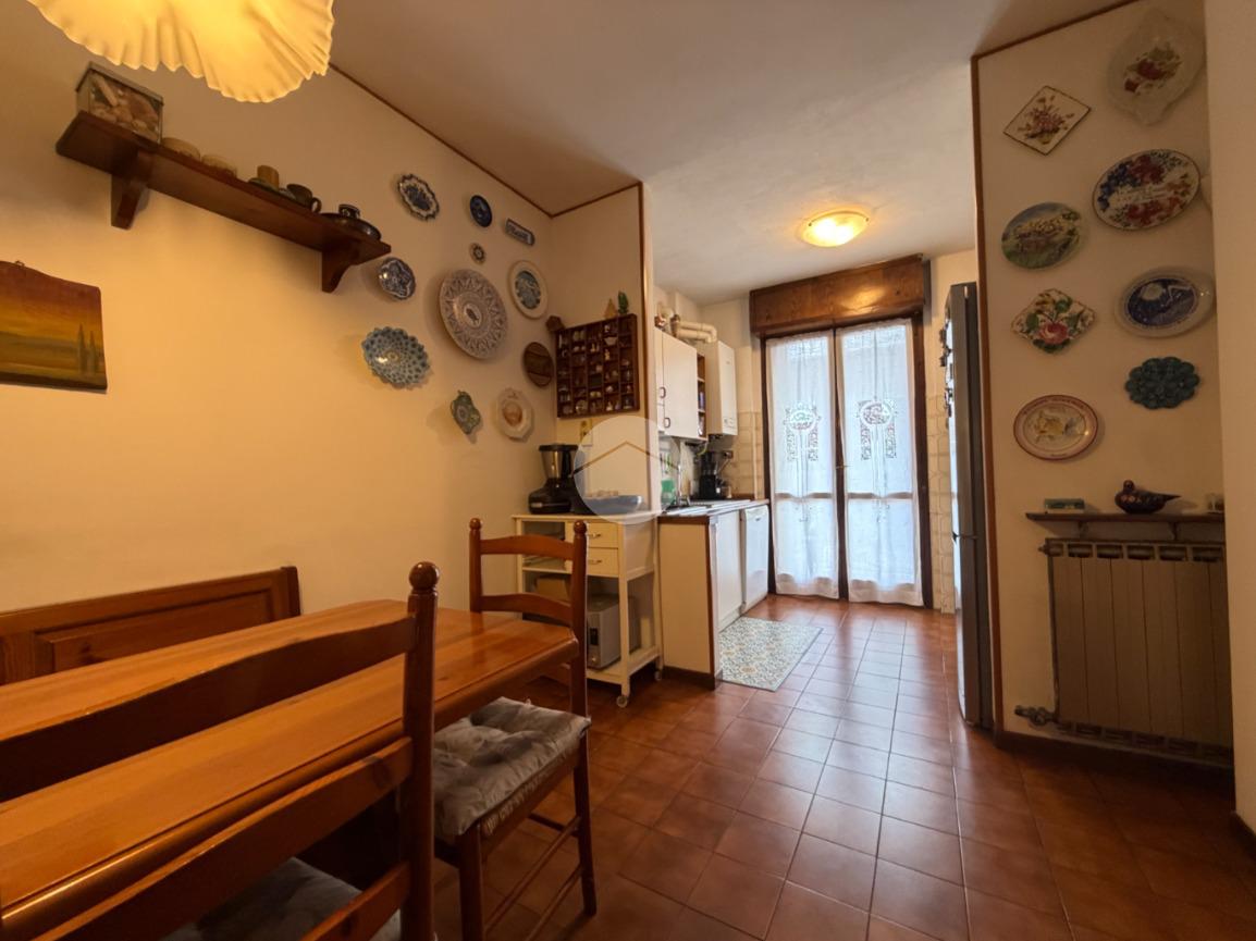 La cucina abitabile, di generose dimensioni, consente di ospitare comodamente un tavolo da sei persone, offrendo un ambiente pratico e conviviale.