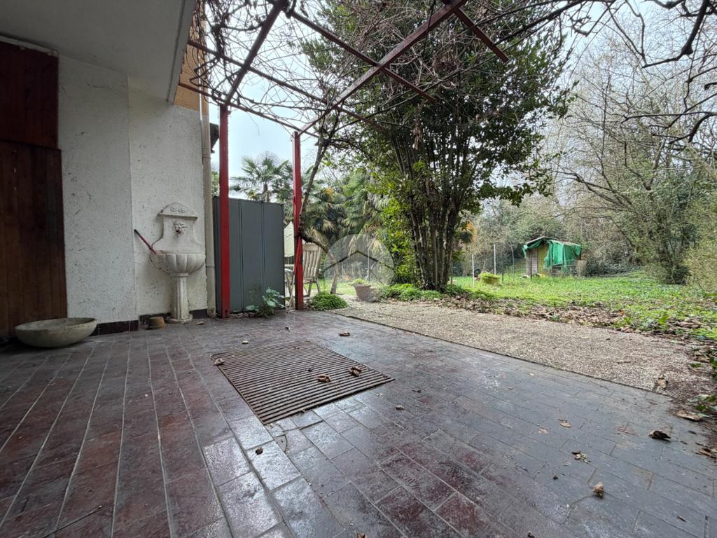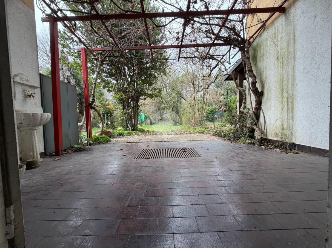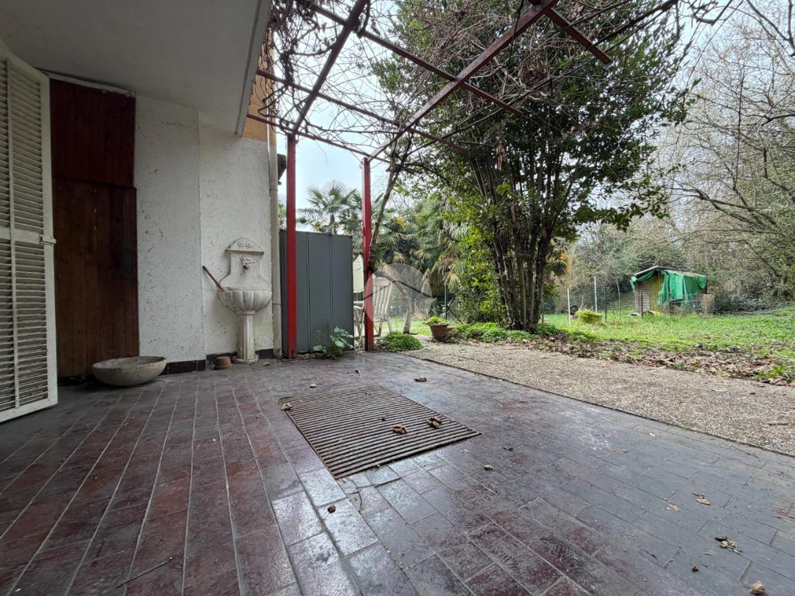 L’abitazione si apre su un balcone d’ingresso che conduce a un ampio e luminoso soggiorno, con accesso diretto al portico e al giardino di proprietà: lo spazio perfetto per pranzi all’aperto e momenti di relax.