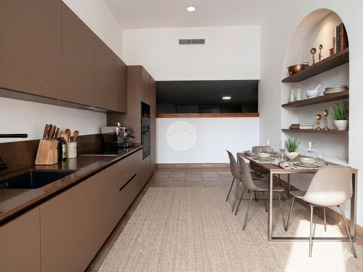 La cucina abitabile, spaziosa e funzionale, può ospitare comodamente un tavolo da sei persone, creando un ambiente conviviale per tutta la famiglia.